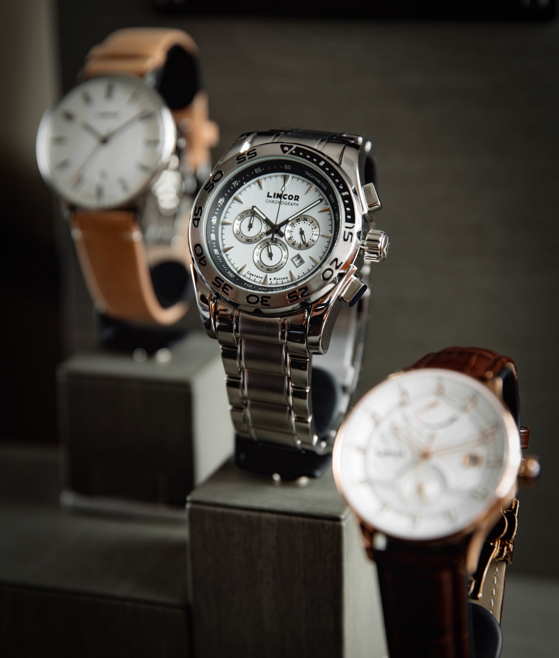 Наши фирменные дисплеи и разнообразные подставки позволяют наилучшим образом представить многочисленные коллекции наших часов и выгодно подчеркнуть особенности каждой линейки.