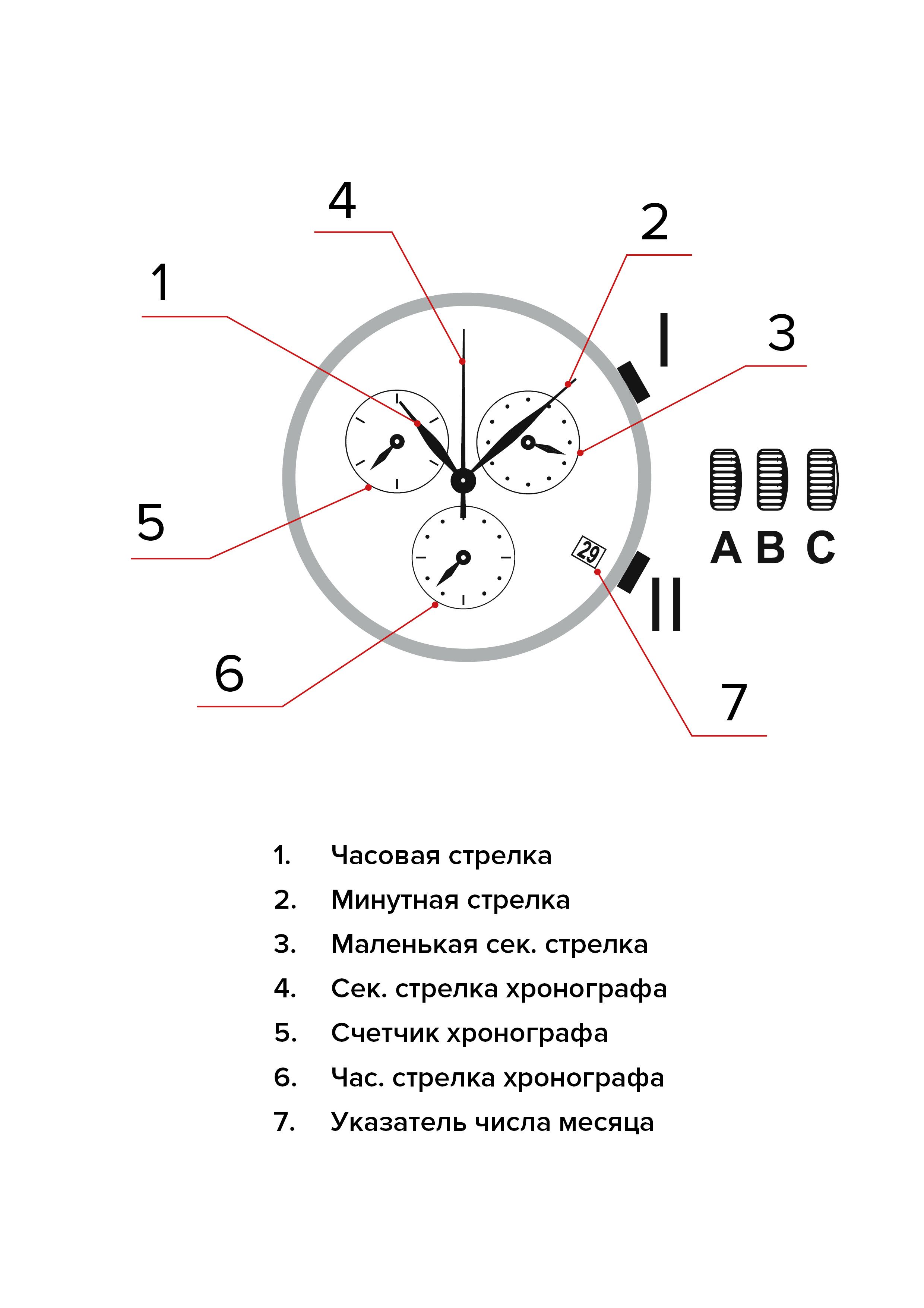 Рекомендуем вращать заводную головку строго по ходу движения стрелок, вращение заводной головки против хода движения стрелок может привести к ПОЛОМКЕ МЕХАНИЗМА