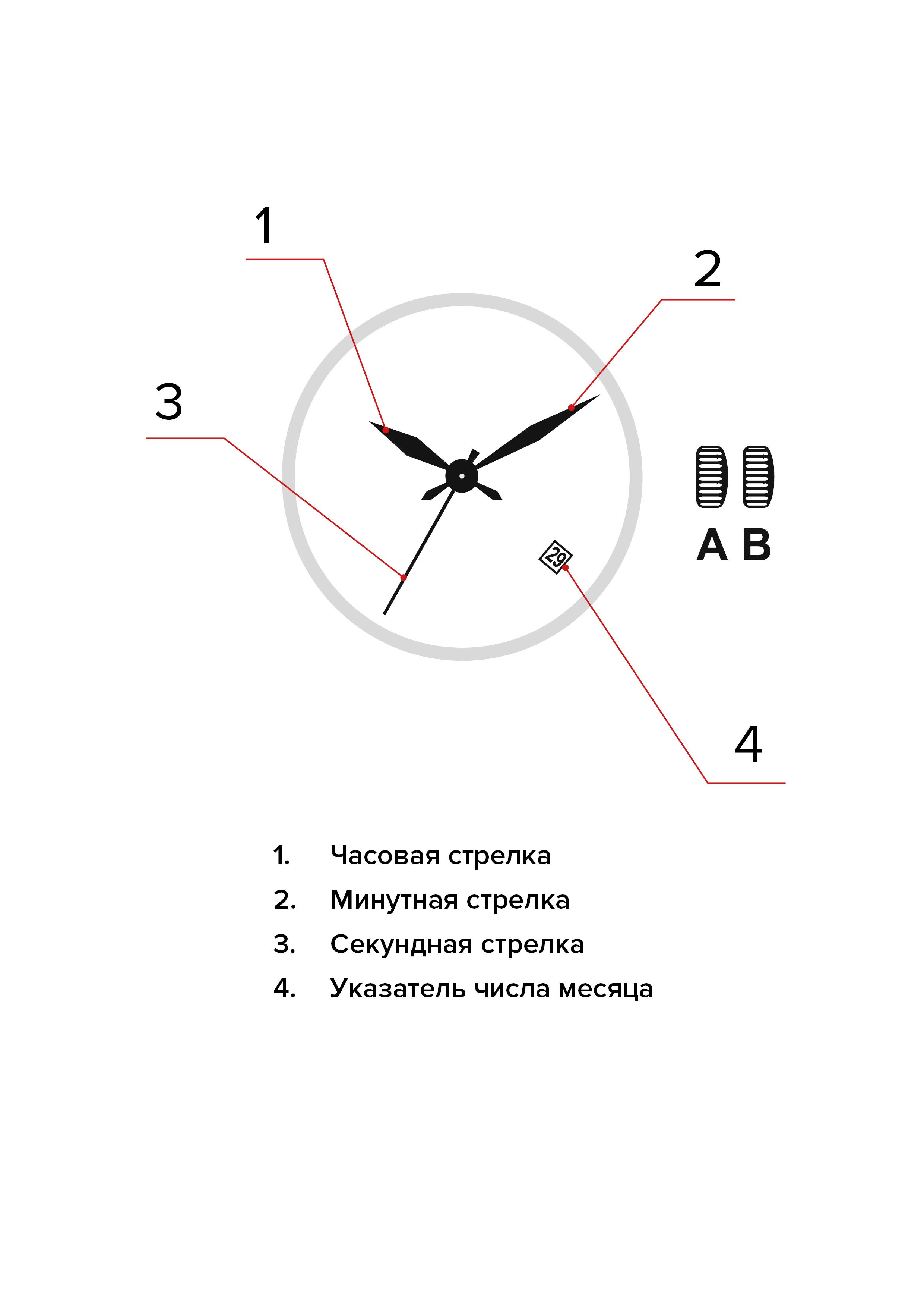 Рекомендуем вращать заводную головку строго по ходу движения стрелок, вращение заводной головки против хода движения стрелок может привести к ПОЛОМКЕ МЕХАНИЗМА