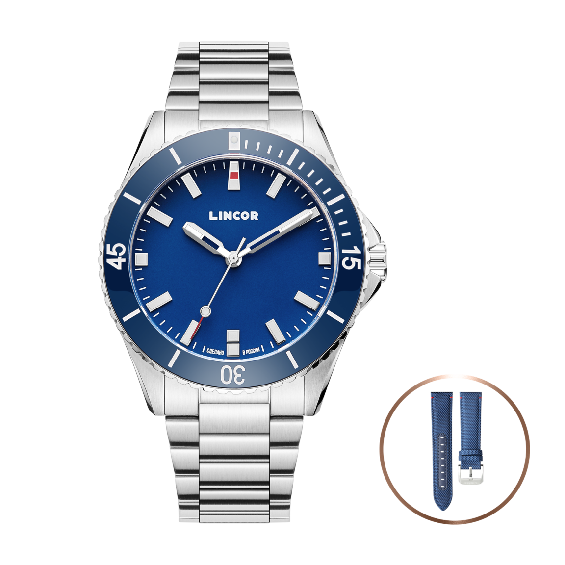 Мужские спортивные механические часы, вдохновлённые водной стихией, для любителей активного образа жизни. Лаконичный циферблат глубокого синего цвета украшают накладные индексы, заполненные люминесцентным покрытием Super-Luminova также как и скелетонизированные стрелки, что облегчает считывание времени не только в воде, но и в условиях недостаточной видимости в тёмное время суток. Модель оснащена высокоточным японским механизмом 8N24 IPG Miyota с запасом хода не менее 35 часов, надёжно защищённым водонепроницаемым стальным корпусом с сапфировым стеклом, что обеспечивает водозащиту в 10 АТМ и позволяет заниматься плаванием на поверхности. Рифлёный вращающийся безель с минутной шкалой выполнен из премиальной керамики и гармонично сочетается с оттенком циферблата. Часы дополнены браслетом из матовой нержавеющей стали с удобной раскладывающейся застёжкой и быстросъемными штифтами для его самостоятельной замены на дополнительный нейлоновый ремешок, который идет в комплекте.