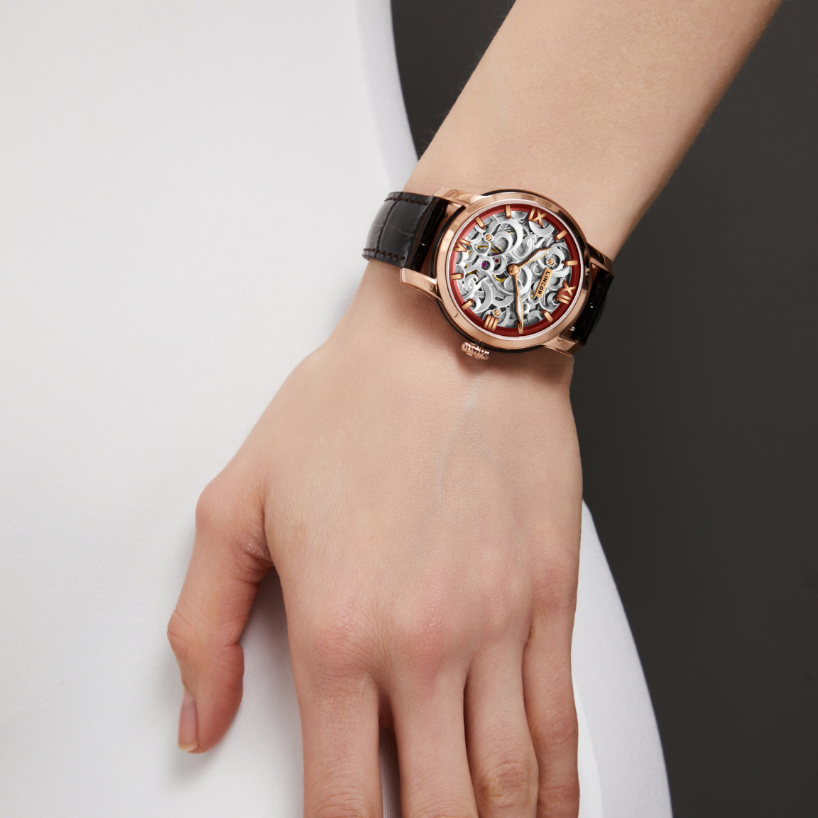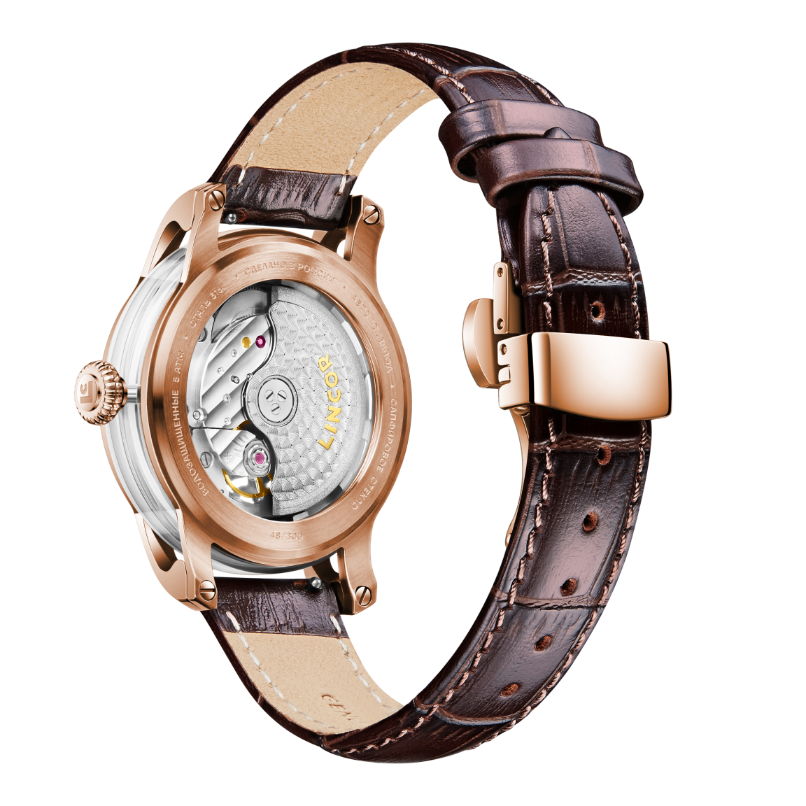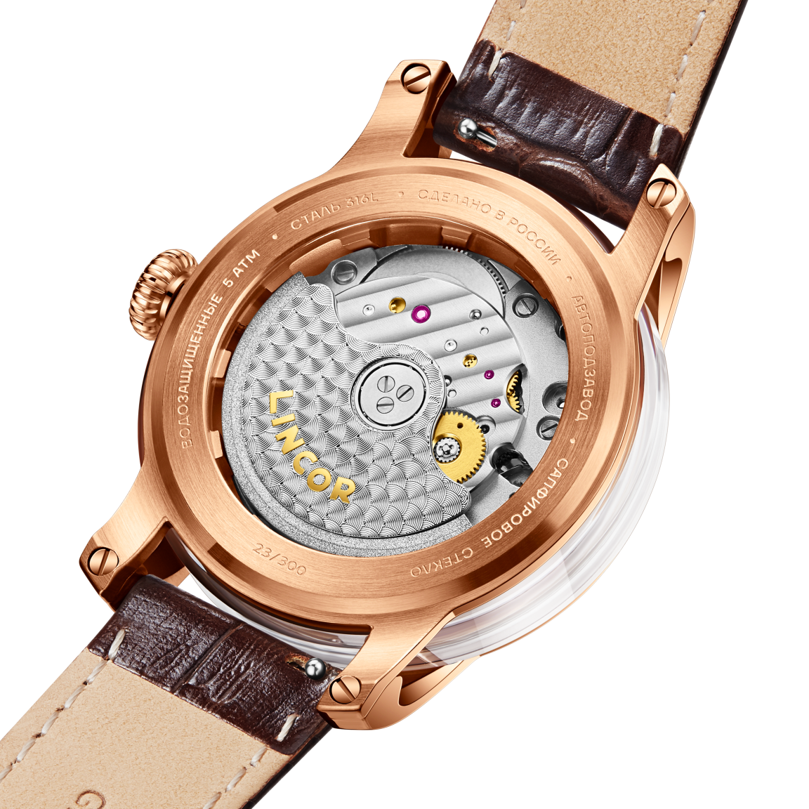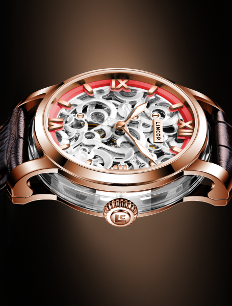 Изящный 38-мм корпус из нержавеющей стали 316L, украшенный по кругу прозрачными сапфировыми вставками, раскрывает танец механического сердца - автоматического премиального калибра Miyota 90S5. Через сапфировое стекло с антибликовым покрытием и прозрачную заднюю крышку можно наблюдать за работой 24-х рубиновых камней и искусно декорированного ротора. Ажурный циферблат сочетает в себе изысканность и функциональность: рельефная латунь с тончайшим узором открывает взгляду танец шестерёнок, а контрастное латунное кольцо с накладными индексами обеспечивает безупречную читаемость. Стрелки с покрытием Superluminous C1 мягко светятся в темноте, напоминая о том, что истинная элегантность вне времени. В комплекте два кожаных ремешка из натуральной итальянской кожи с удобной системой быстрой смены. Водозащита 5 ATM делает эти часы не просто украшением, а верным спутником в ритме современной жизни. Деревянная шкатулка с лаковым покрытием превращает покупку в настоящий подарочный ритуал.