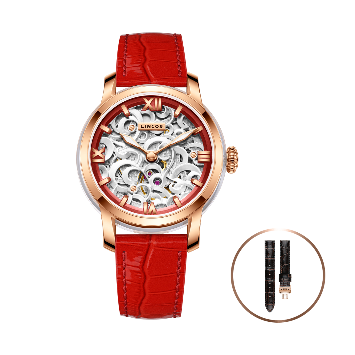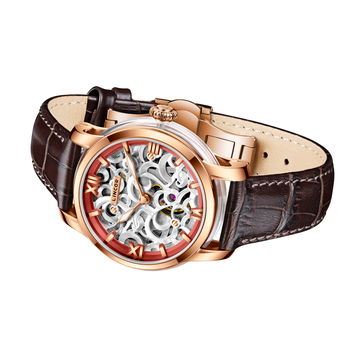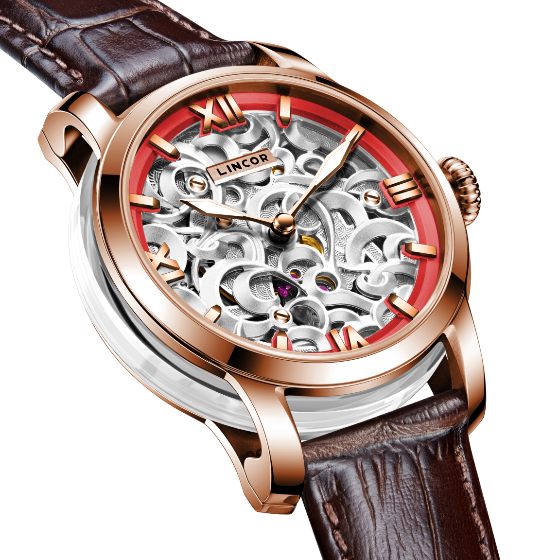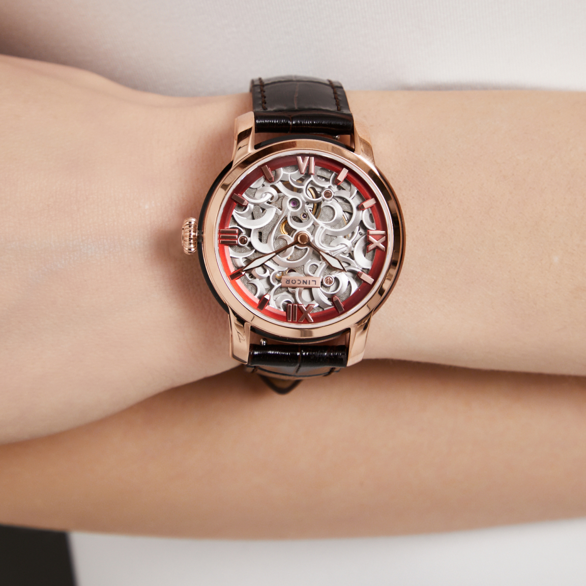 Изящный 38-мм корпус из нержавеющей стали 316L, украшенный по кругу прозрачными сапфировыми вставками, раскрывает танец механического сердца - автоматического премиального калибра Miyota 90S5. Через сапфировое стекло с антибликовым покрытием и прозрачную заднюю крышку можно наблюдать за работой 24-х рубиновых камней и искусно декорированного ротора. Ажурный циферблат сочетает в себе изысканность и функциональность: рельефная латунь с тончайшим узором открывает взгляду танец шестерёнок, а контрастное латунное кольцо с накладными индексами обеспечивает безупречную читаемость. Стрелки с покрытием Superluminous C1 мягко светятся в темноте, напоминая о том, что истинная элегантность вне времени. В комплекте два кожаных ремешка из натуральной итальянской кожи с удобной системой быстрой смены. Водозащита 5 ATM делает эти часы не просто украшением, а верным спутником в ритме современной жизни. Деревянная шкатулка с лаковым покрытием превращает покупку в настоящий подарочный ритуал.