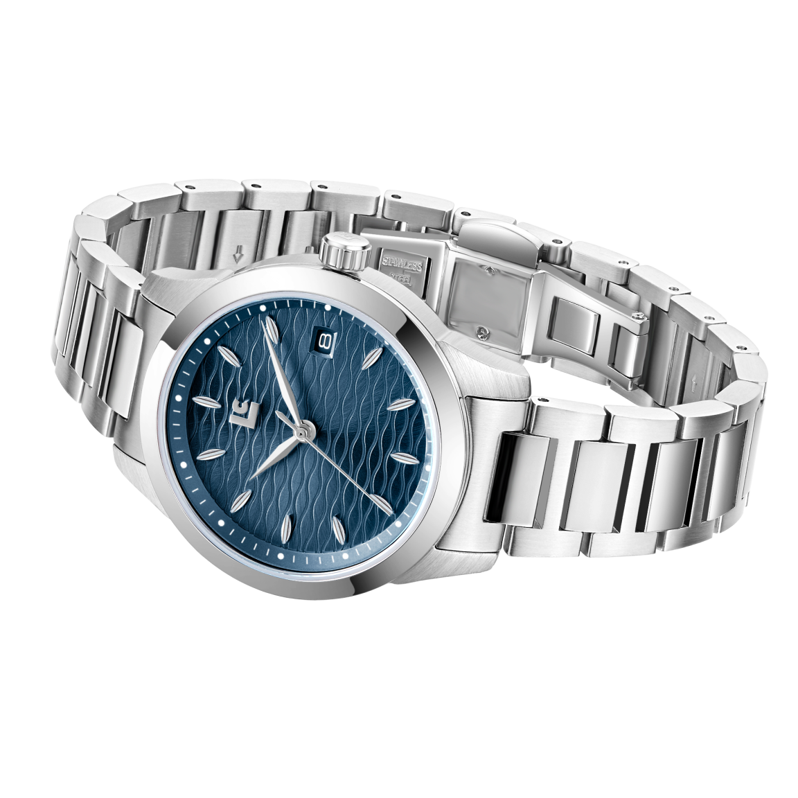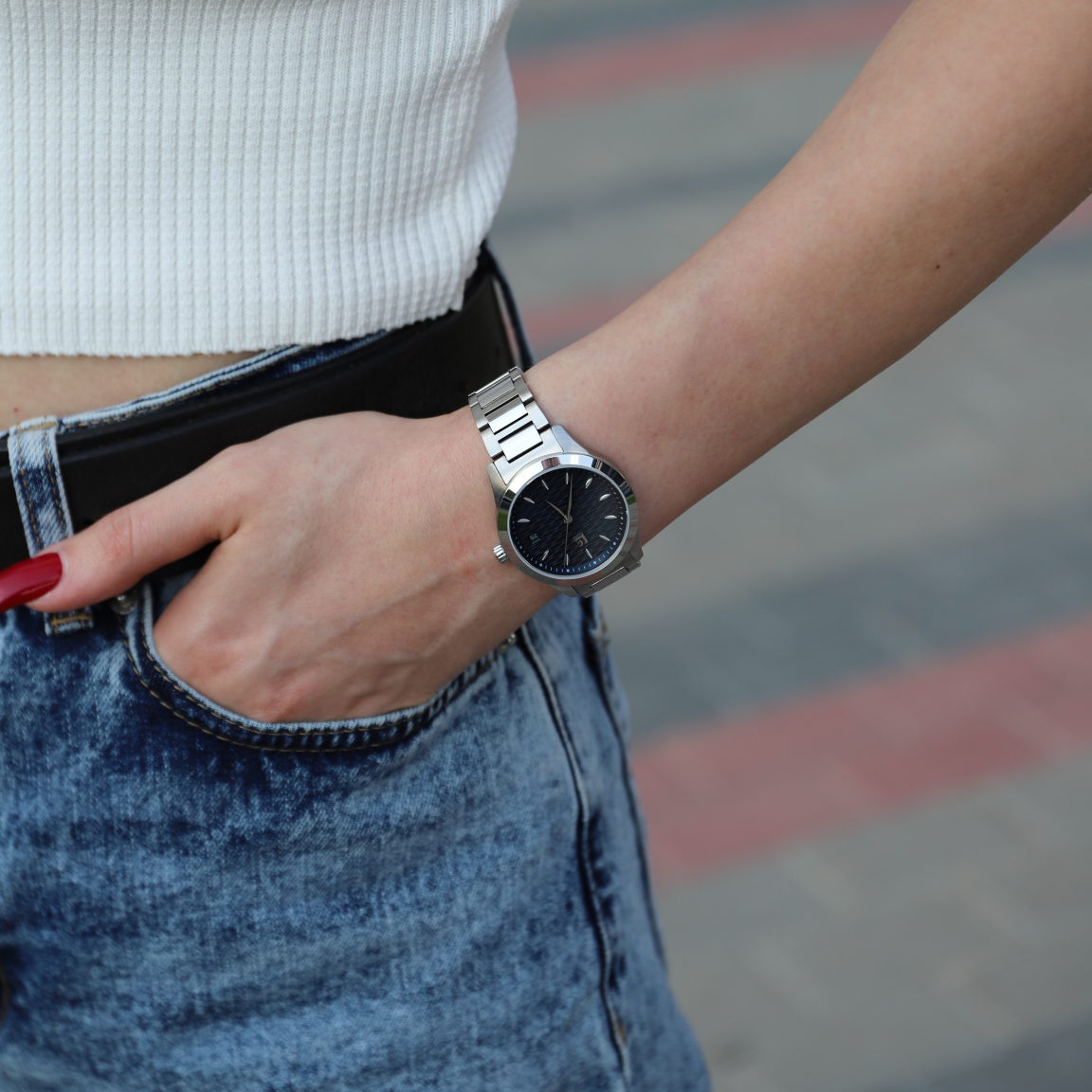 Эти часы сочетают лаконичный дизайн с выразительной эстетикой. Их рельефные циферблаты в насыщенных летних оттенках создают эффект живого мерцания. Лаконичность подчеркивают изящные индексы-лепестки, добавляющие ноту природной гармонии. Компактный 34-мм корпус из нержавеющей стали 316L сочетает нежное сатинирование с элегантным глянцевым безелем, создавая эффектную игру света. Прочность и чистоту линий гарантирует сапфировое стекло, а водозащита 5 АТМ делает модель практичной для повседневной носки. Точность им обеспечивает кварцевый механизм GM12 Miyota, а стальной браслет с контрастной полировкой и удобной застежкой-бабочкой завершает образ, добавляя комфорт и стиль. Свежесть лета — в каждой детали.