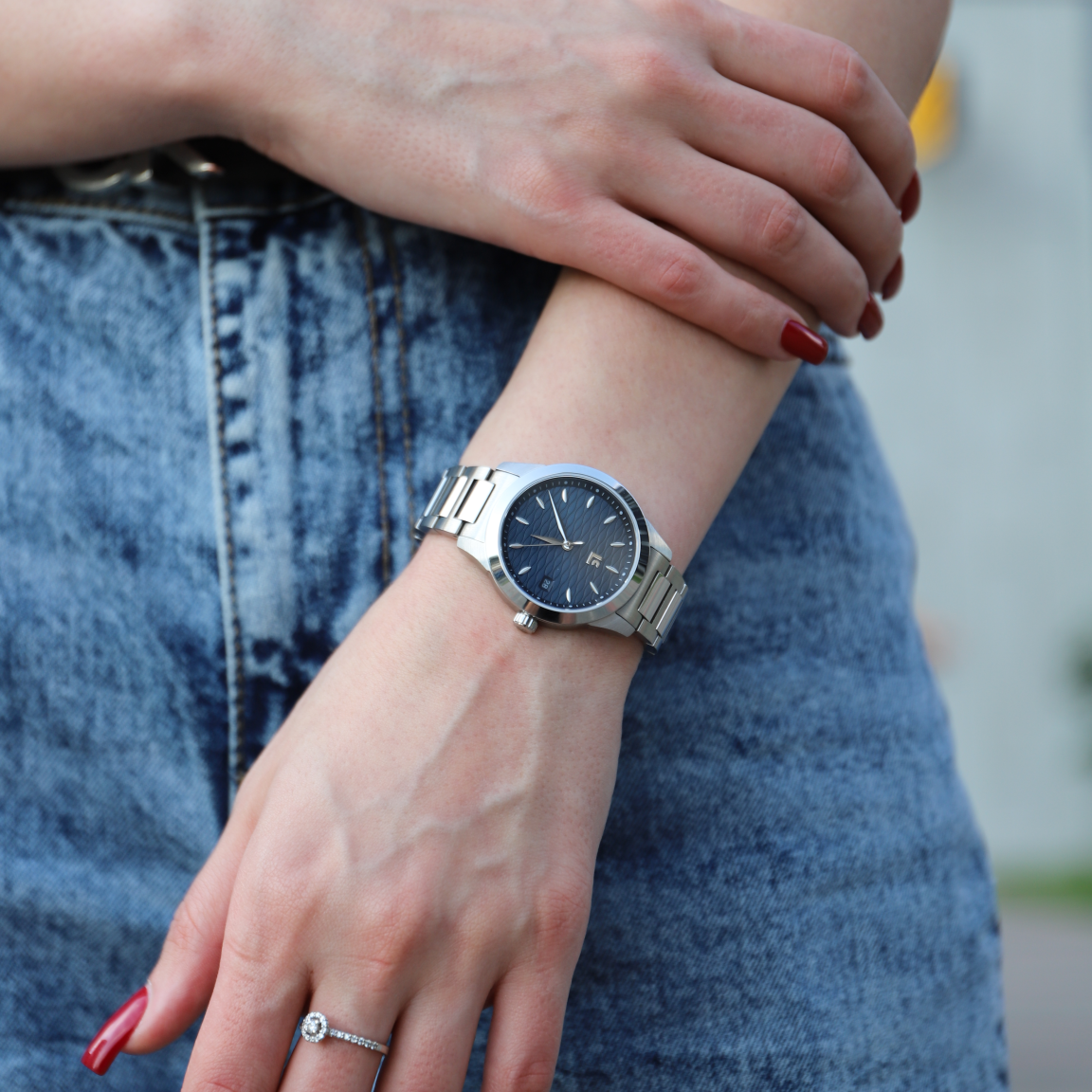 Учз это элегантность в каждой детали. Переливающийся циферблат, изящный стальной корпус,удобный размер. Ремень не натирает и не вызывает раздражений.