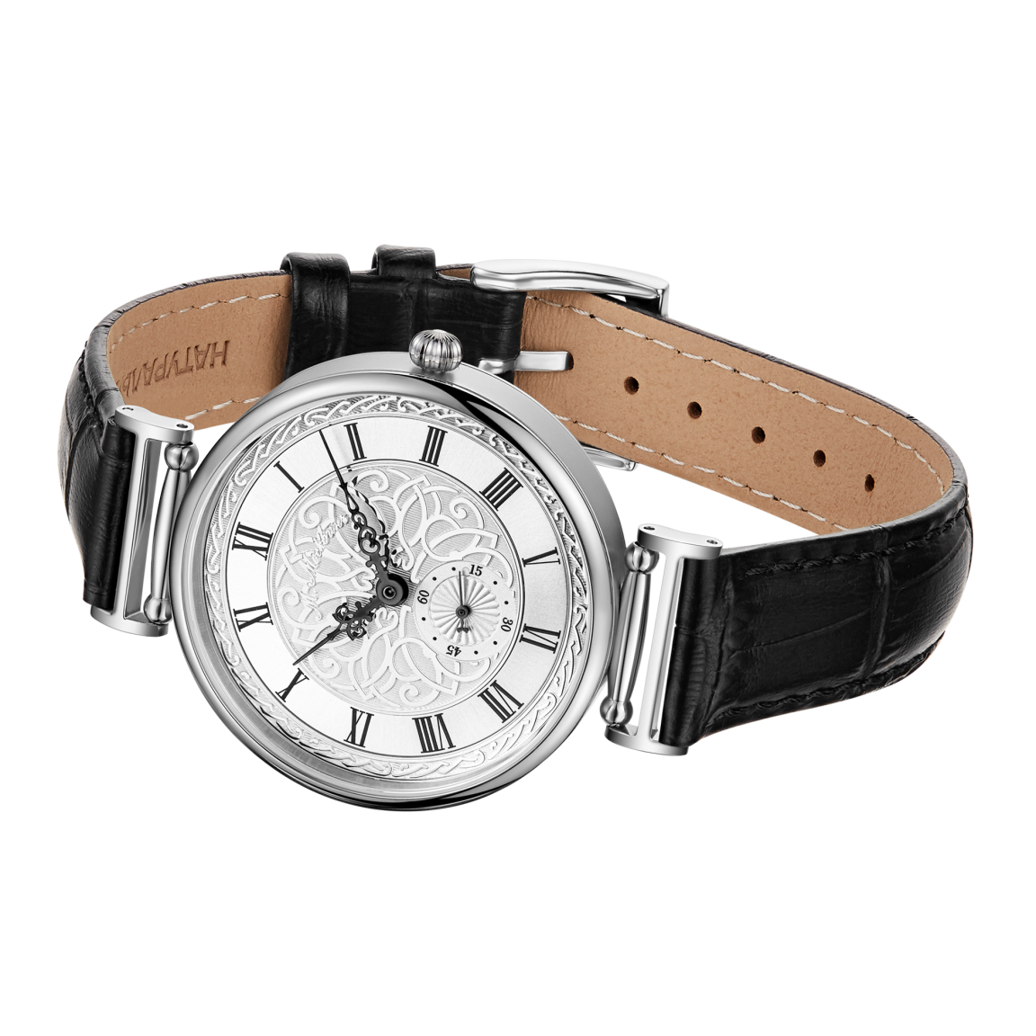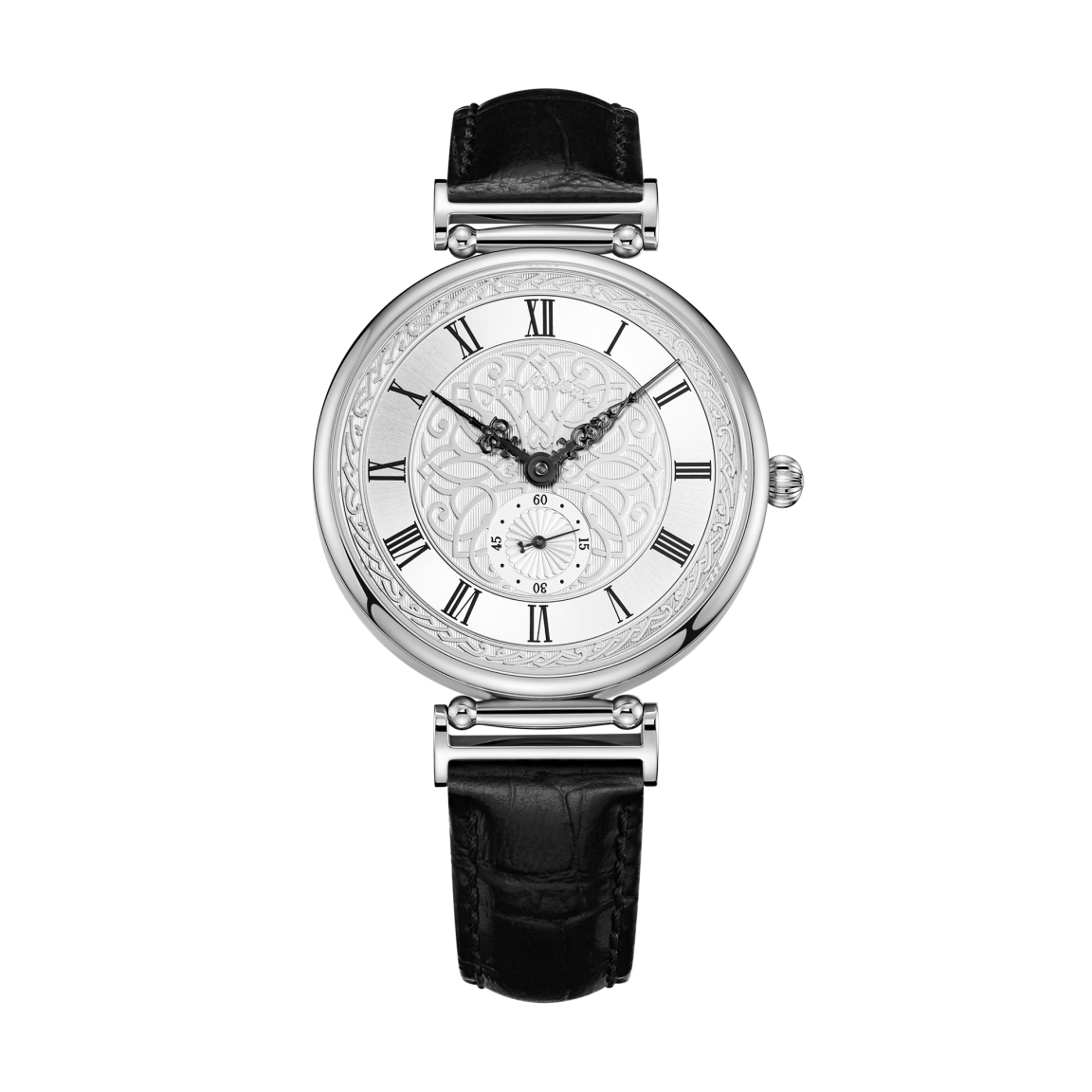 Авторские наручные часы в винтажном стиле для тех, кто ценит наследие традиций и современное качество исполнения. Они представлены в 38 миллиметровом корпусе из нержавеющей стали, где матовая основа эффектно сочетается с глянцевыми безелем и задней крышкой, создавая выразительный вид сбоку часов. Циферблат этих часов — настоящее произведение искусства. Каждая деталь проработана с ювелирной точностью: объемный ажурный узор, нанесенный методом штамповки, создает эффект ручной гравировки, придавая глубину и благородный блеск. Строгая полная оцифровка в классическом стиле гармонично сочетается с изящными резными стрелками, которые словно парят над сложным рельефным фоном. Под сапфировым стеклом скрывается точный швейцарский кварцевый механизм Ronda R1004, а водозащита 5 ATM делает часы практичными для повседневной носки. Задняя крышка на четырех винтах украшена рельефной гравировкой, и завершающим штрихом является ремень из натуральной итальянской кожи с тиснением под крокодила и оригинальной классической пряжкой необычной формы. Утонченность, надежность и неповторимый стиль в каждой детали.