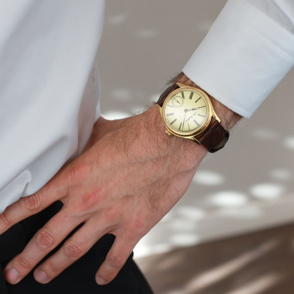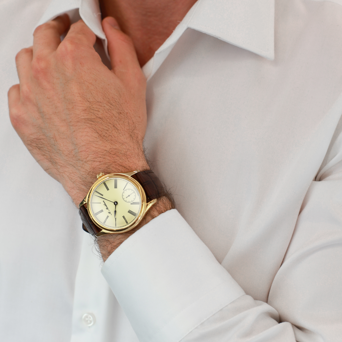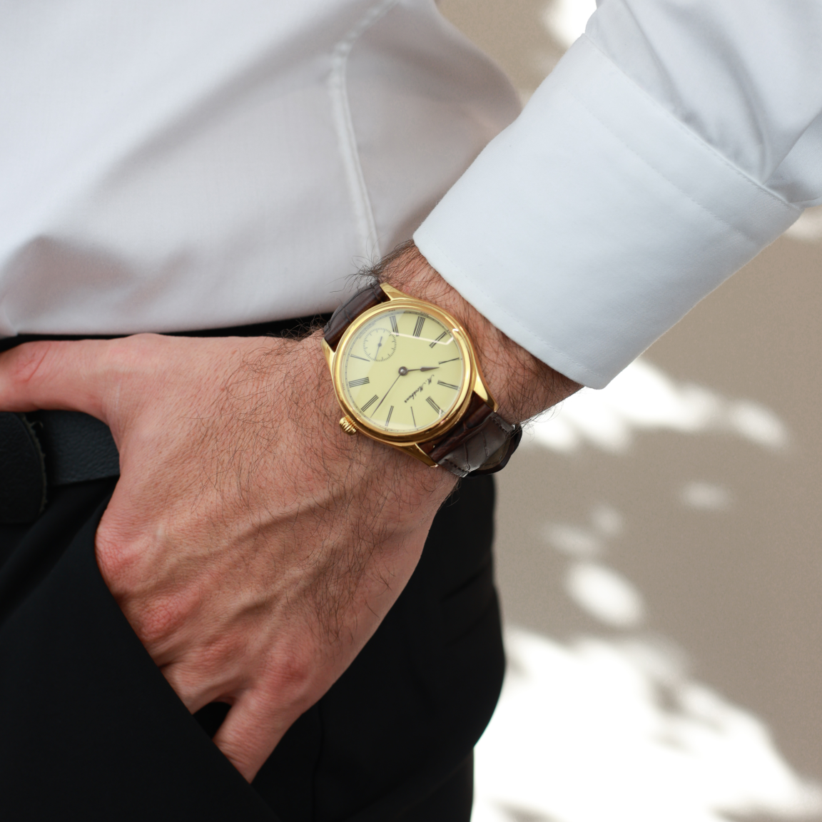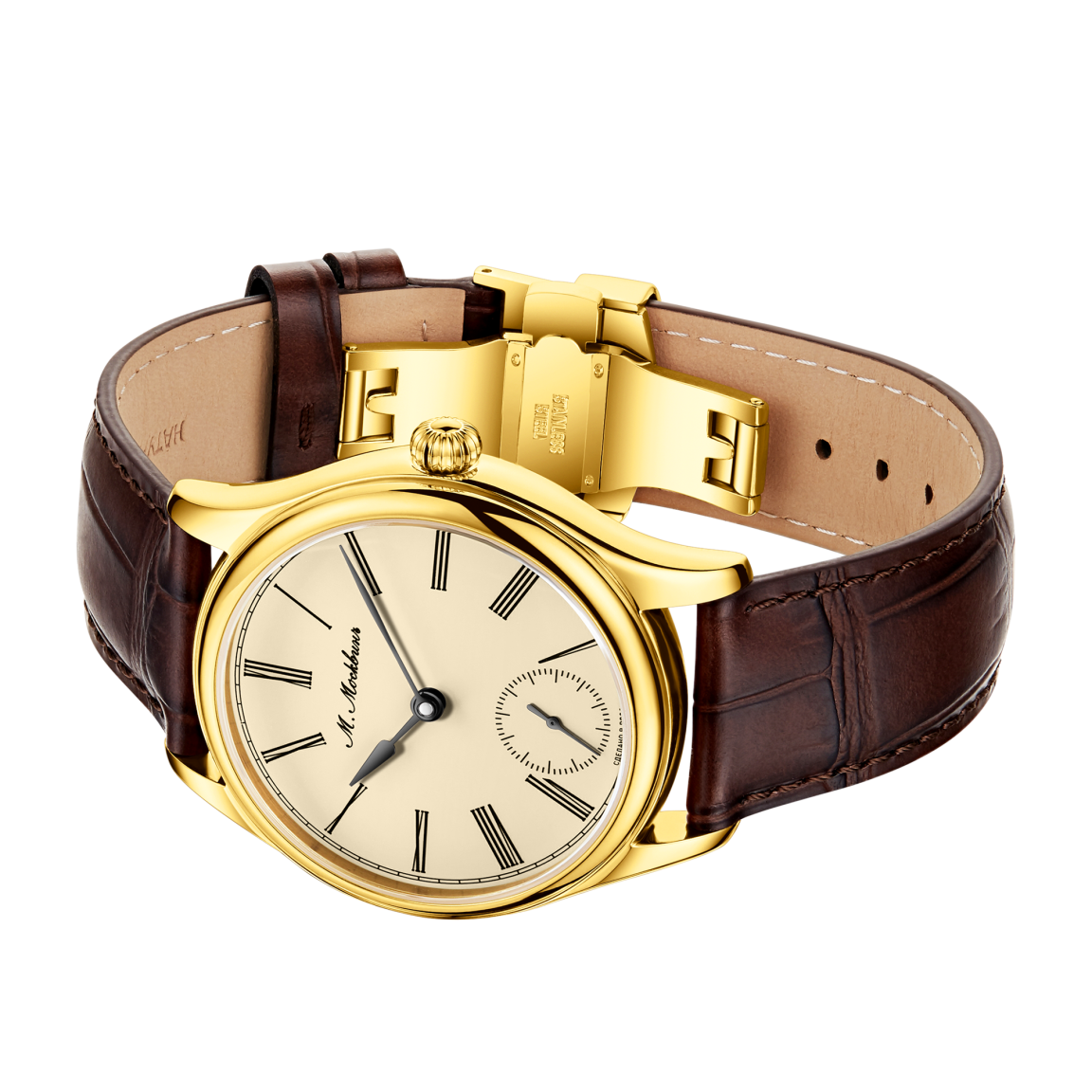 Мужские часы в классическом стиле для ценителей традиций: 42-мм корпус из нержавеющей стали с узнаваемой луковичной головкой сочетает элегантность и функциональность. Внутри бьётся сердце механизма Seagull ST3621 с ручным заводом, а сквозь прозрачную заднюю крышку можно наблюдать за его точной работой. Циферблат с вертикальным сатинированием, лаконичными накладными индексами и вынесенной секундной стрелкой подчёркивает строгий классический стиль. Сапфировое стекло защищает от царапин, а водонепроницаемость 5 АТМ делает часы устойчивыми к брызгам и дождю. Ремень из натуральной итальянской кожи с благородным тиснением под крокодила и удобной пряжкой-бабочкой завершает образ, добавляя комфорт и статусность.