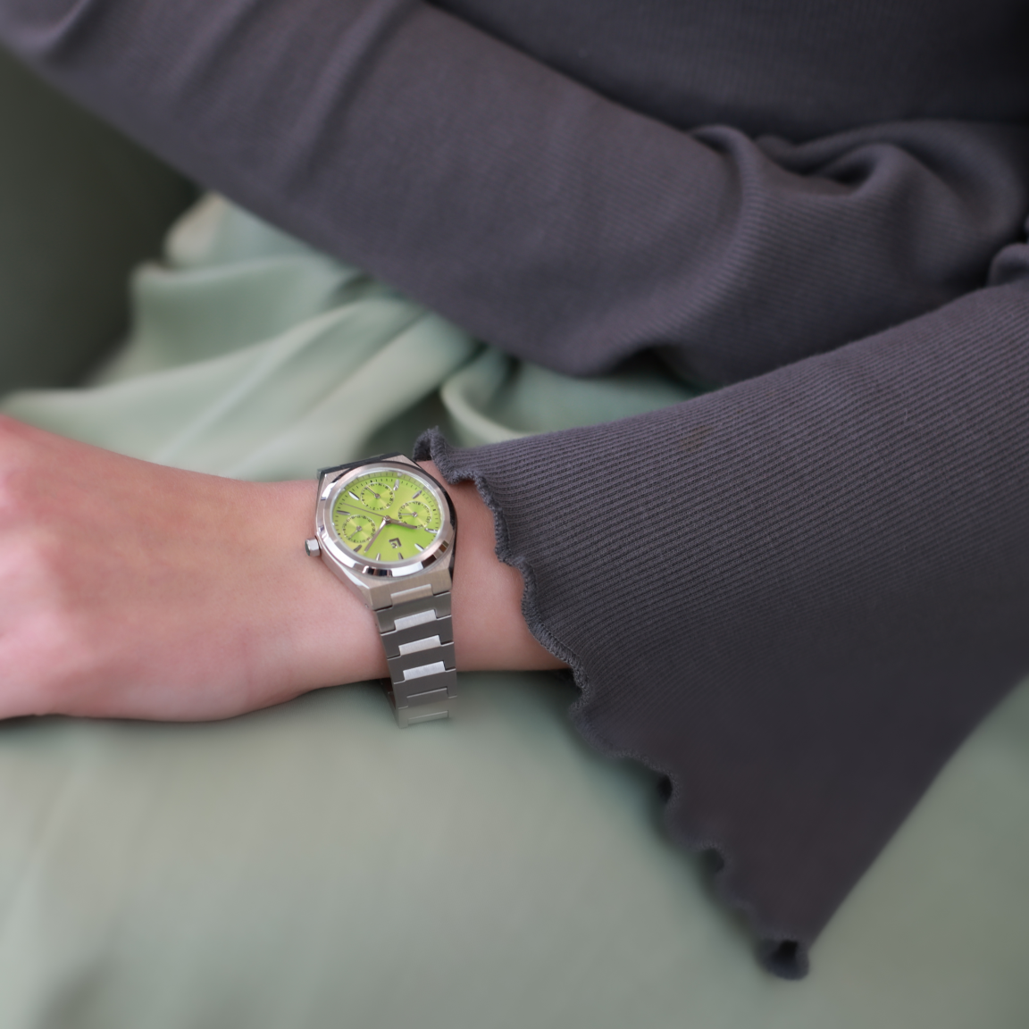 Выбрала нежно-голубой оттенок — смотрится изумительно и идеально дополняет летние образы. Удивительно, как в такой изящной модели собрано столько функций: и календарь, и защита от воды (уже тестировала у моря!). Браслет невероятно удобный, совсем не чувствуется на руке. А сапфировое стекло — просто волшебство: ношу месяц, а царапин ноль. Рекомендую всем, кто ценит элегантность и надёжность!