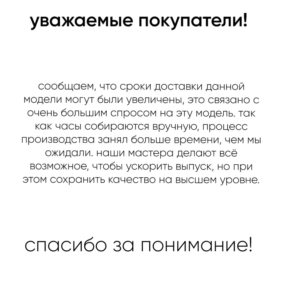 Заказывал часы на юбилей супруги (очень они ей понравились). Сделал заказ с доставкой СДЭК. Часы пришли уже на следующий день. Отлично упакованные. Часы замечательные.