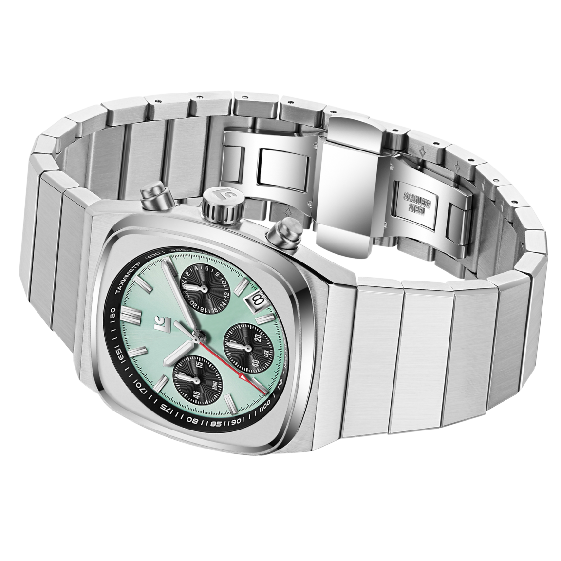 Элегантные унисекс-часы в оригинальном квадратном корпусе размером 36х44 мм. Матовое сатинирование циферблата и глянцевый безель подчеркивают благородство форм, а прочный корпус и браслет из стали 316L гарантируют долговечность. Сердце модели — точный японский кварцевый механизм с хронографом, 24-часовой шкалой и датой. Сапфировое стекло с антибликовым покрытием защищает циферблат с продолговатыми индексами и люминесцентными стрелками, обеспечивая читаемость показаний времени в любых условиях. Браслет с горизонтальным сатинированием и глянцевыми скосами придает образу утонченность, а водозащита 5 АТМ позволяет использовать часы в условиях повышенной влажности.
