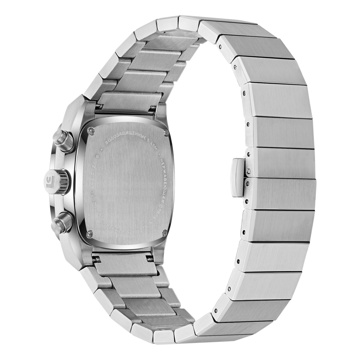 Элегантные унисекс-часы в оригинальном квадратном корпусе размером 36х44 мм. Матовое сатинирование циферблата и глянцевый безель подчеркивают благородство форм, а прочный корпус и браслет из стали 316L гарантируют долговечность. Сердце модели — точный японский кварцевый механизм с хронографом, 24-часовой шкалой и датой. Сапфировое стекло с антибликовым покрытием защищает циферблат с продолговатыми индексами и люминесцентными стрелками, обеспечивая читаемость показаний времени в любых условиях. Браслет с горизонтальным сатинированием и глянцевыми скосами придает образу утонченность, а водозащита 5 АТМ позволяет использовать часы в условиях повышенной влажности.