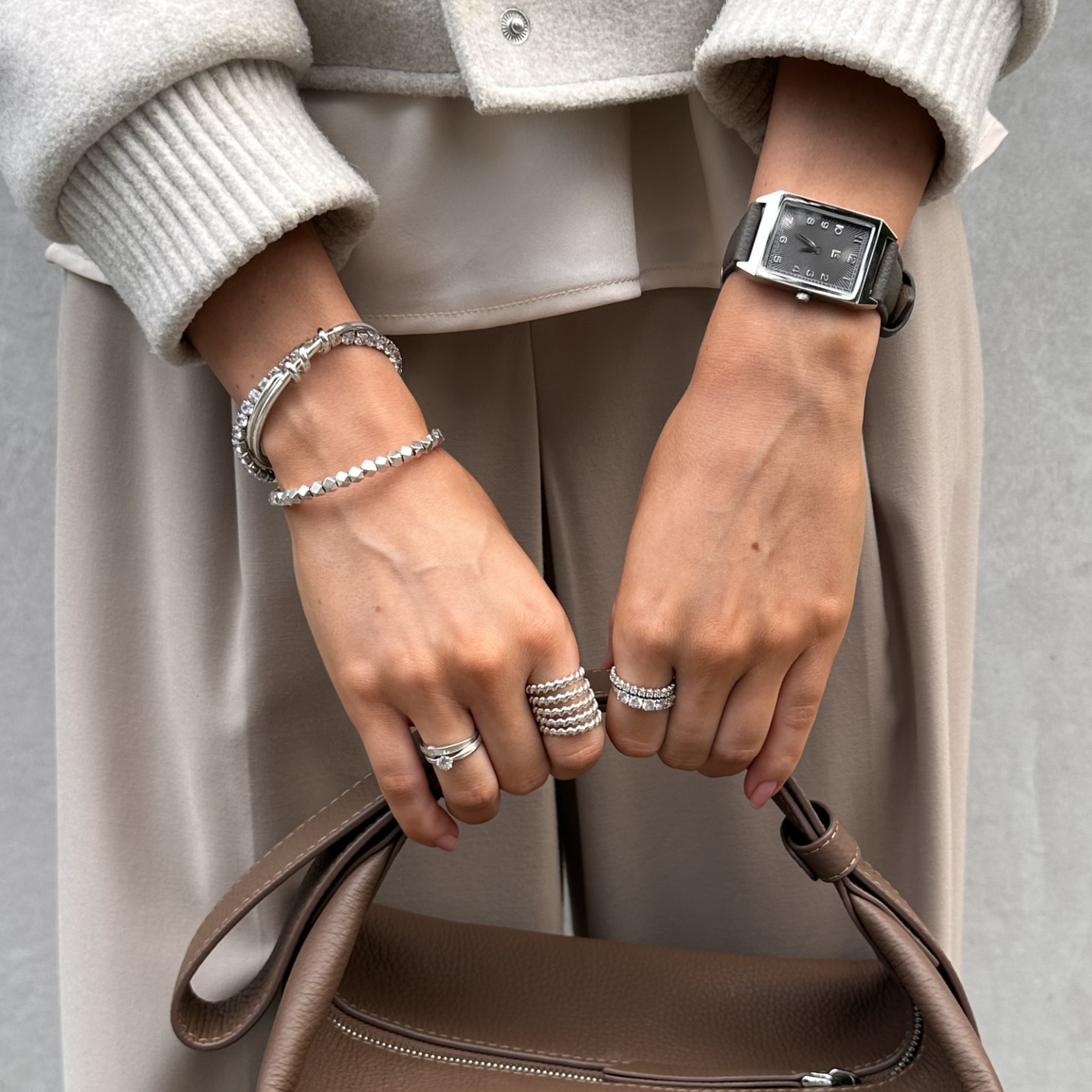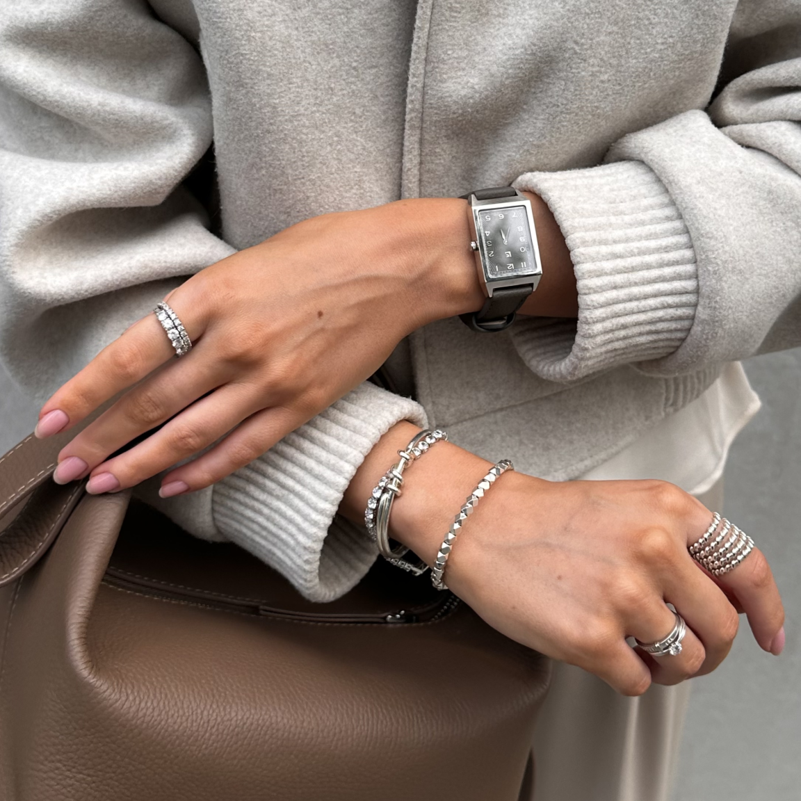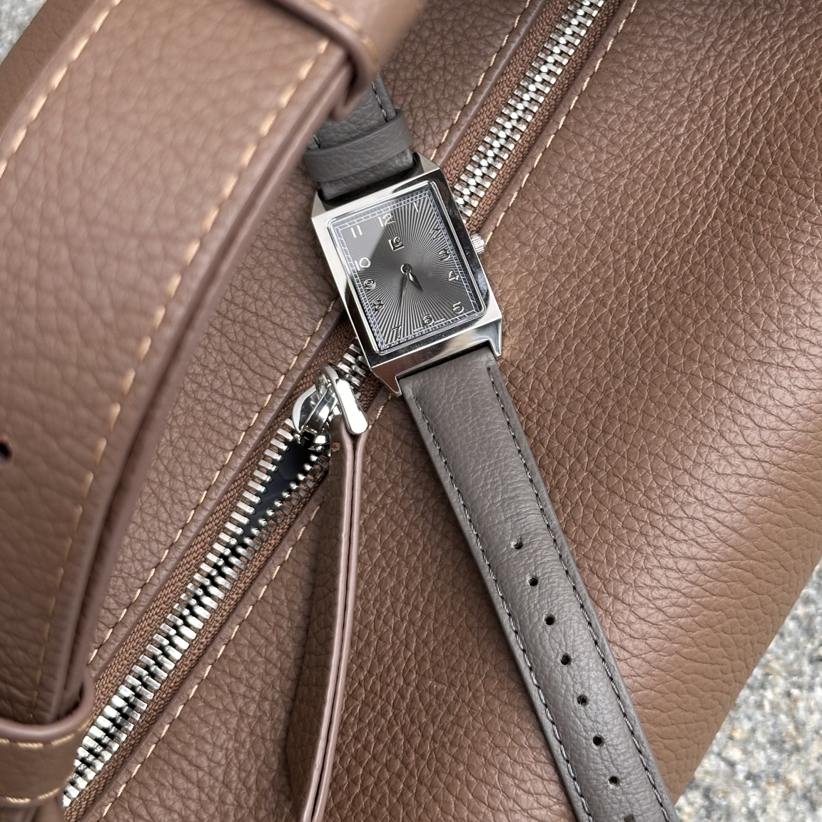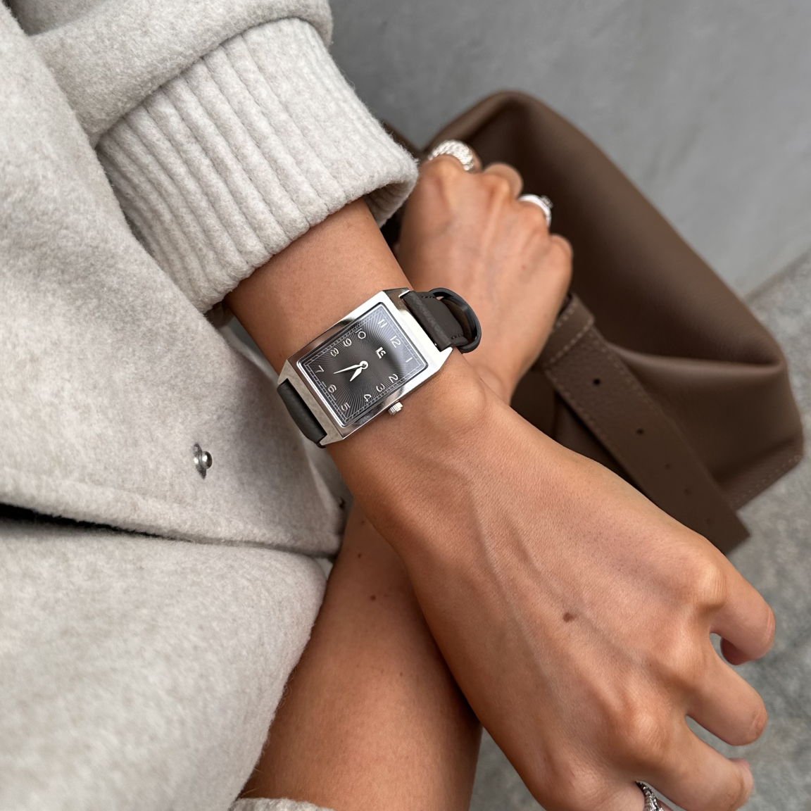 Женские прямоугольные часы из нержавеющей стали притягивают взгляд игрой света на изящно скошенных гранях, придающих корпусу особую объемность и шарм. Характерный корпус обрамляет гильошированный циферблат, на котором выделяются накладные арабские цифры, обеспечивающие чёткую индикацию времени. За точность хода отвечает надежный японский кварцевый механизм, а водозащита 3 АТМ делает часы практичными для повседневной носки. Мягкий кожаный ремешок, идеально сочетающийся с тоном циферблата, лаконично завершает образ модели.