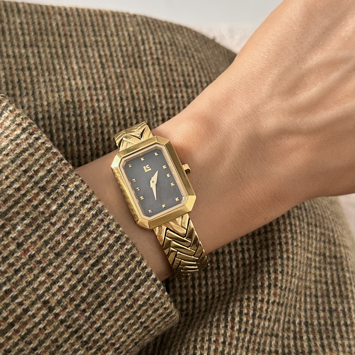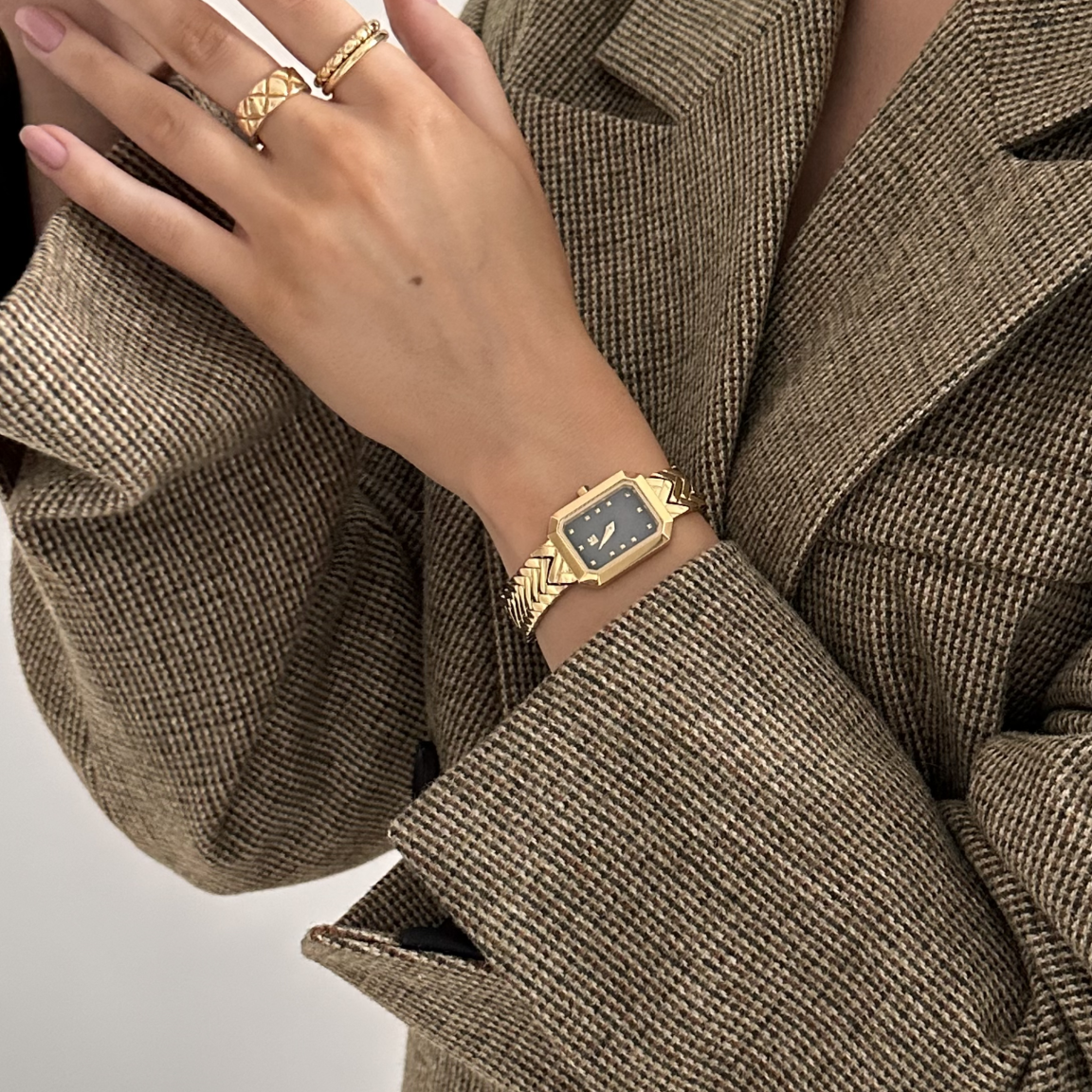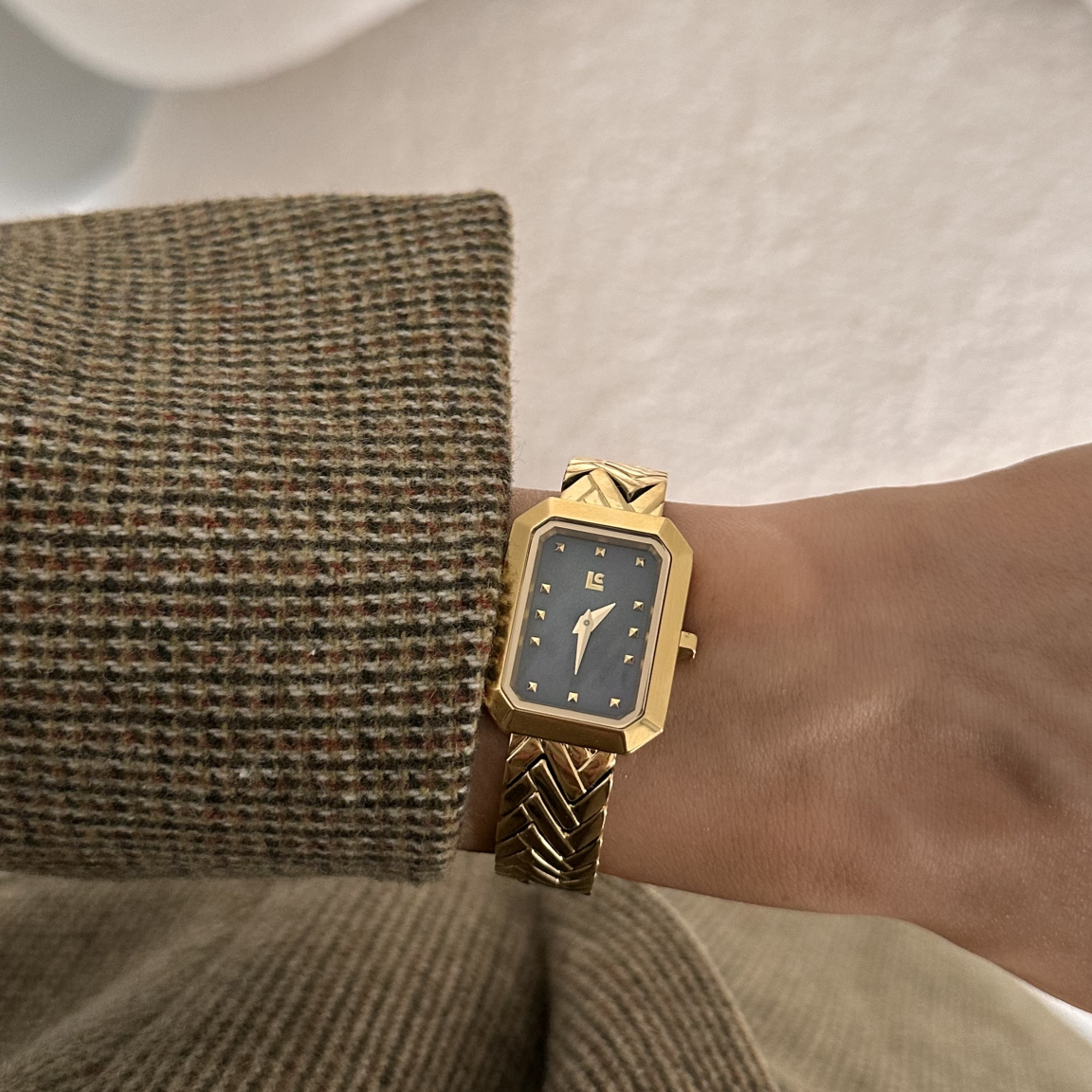 Откройте для себя эталон стиля и точности. Перламутровый циферблат, инкрустированный фианитами, установлен в оригинальный корпус из нержавеющей стали, имеющий характерную восьмиугольную форму октагона. Стальной браслет в виде звеньев “в елочку” элегантно облегает запястье и удобно фиксируется благодаря пряжке-бабочке, а водонепроницаемость 5 АТМ и кварцевый японский механизм гарантируют исключительную долговечность. Это незаменимый аксессуар с неподвластным времени шиком, который подойдет для любого случая.