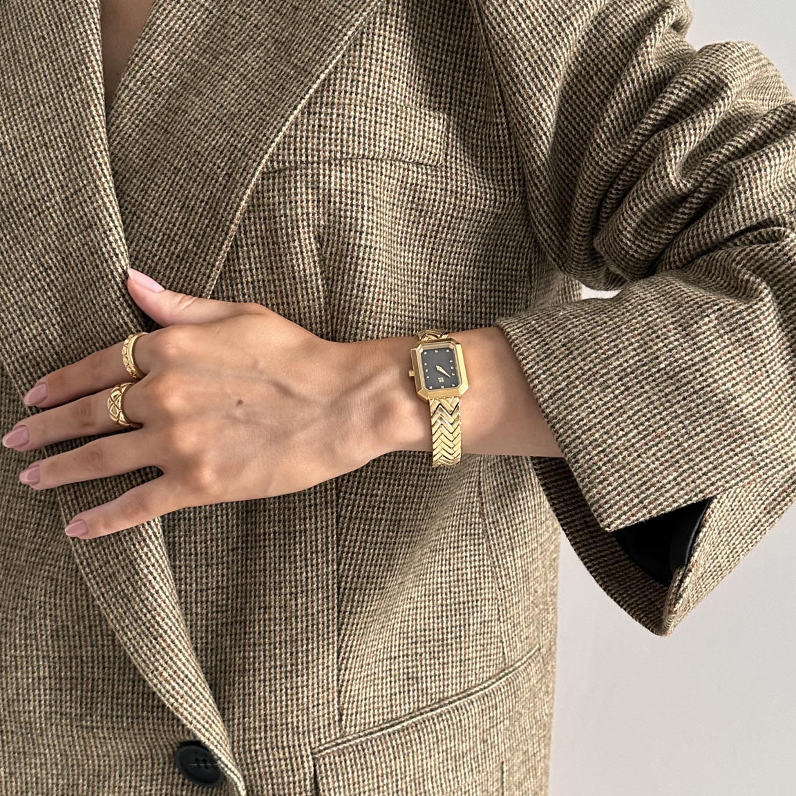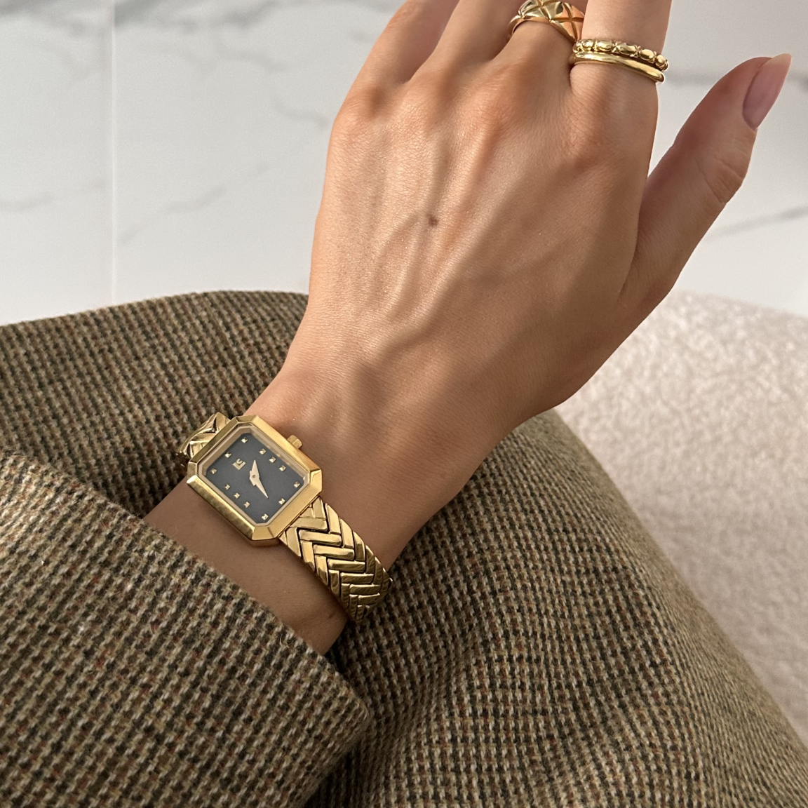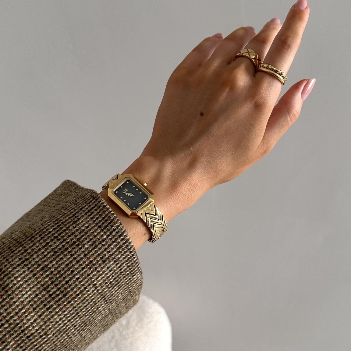 Откройте для себя эталон стиля и точности. Перламутровый циферблат, инкрустированный фианитами, установлен в оригинальный корпус из нержавеющей стали, имеющий характерную восьмиугольную форму октагона. Стальной браслет в виде звеньев “в елочку” элегантно облегает запястье и удобно фиксируется благодаря пряжке-бабочке, а водонепроницаемость 5 АТМ и кварцевый японский механизм гарантируют исключительную долговечность. Это незаменимый аксессуар с неподвластным времени шиком, который подойдет для любого случая.
