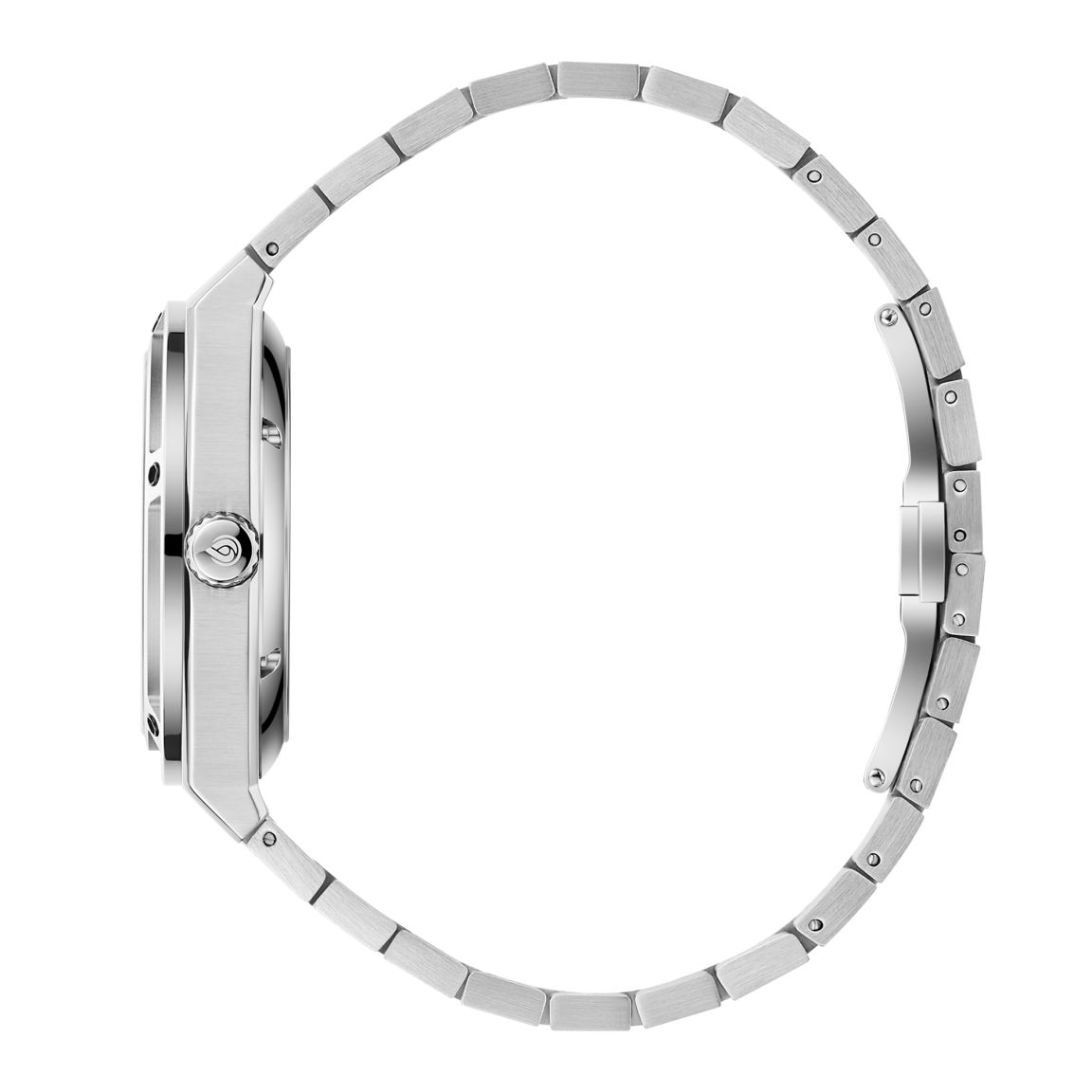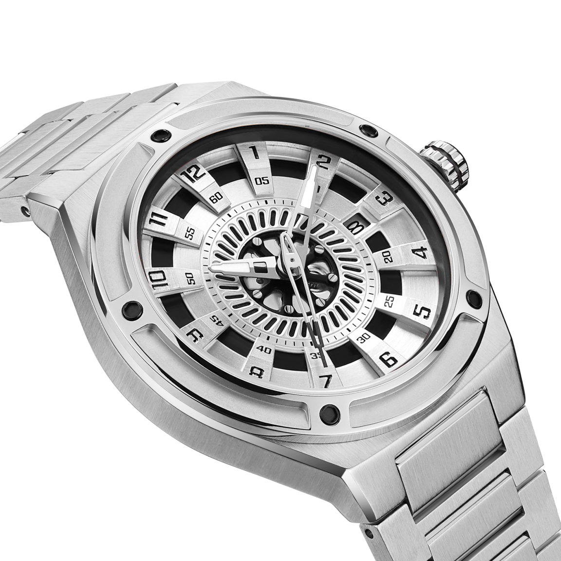 Дизайн циферблата, защищенного сапфировым стеклом с антибликовым покрытием вдохновлен очертаниями гидротурбин и внутреннего устройство машзала. Сочетание матовой и полированной стали 316L корпуса размером 42×48,5 мм отражают брутальный характер индустриального стиля. Водозащита 10 ATM позволяет использовать часы под водой, а светящиеся в темноте стрелки с покрытием Swiss Super-LumiNova напоминают потоки электрической энергии.
