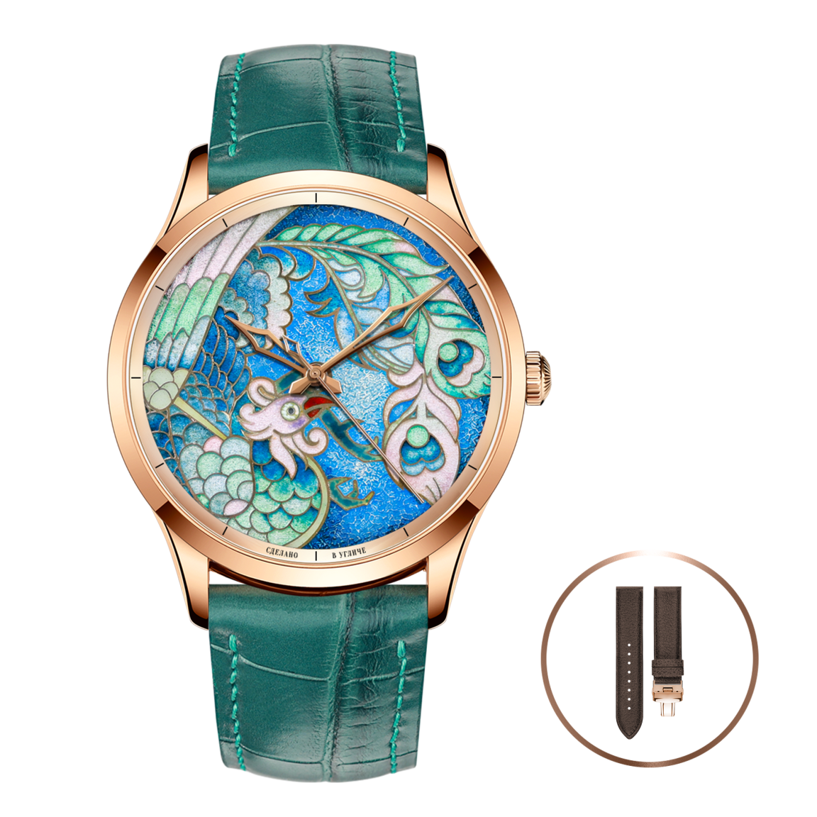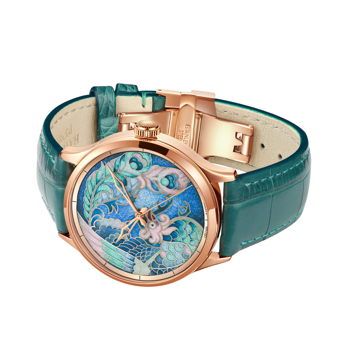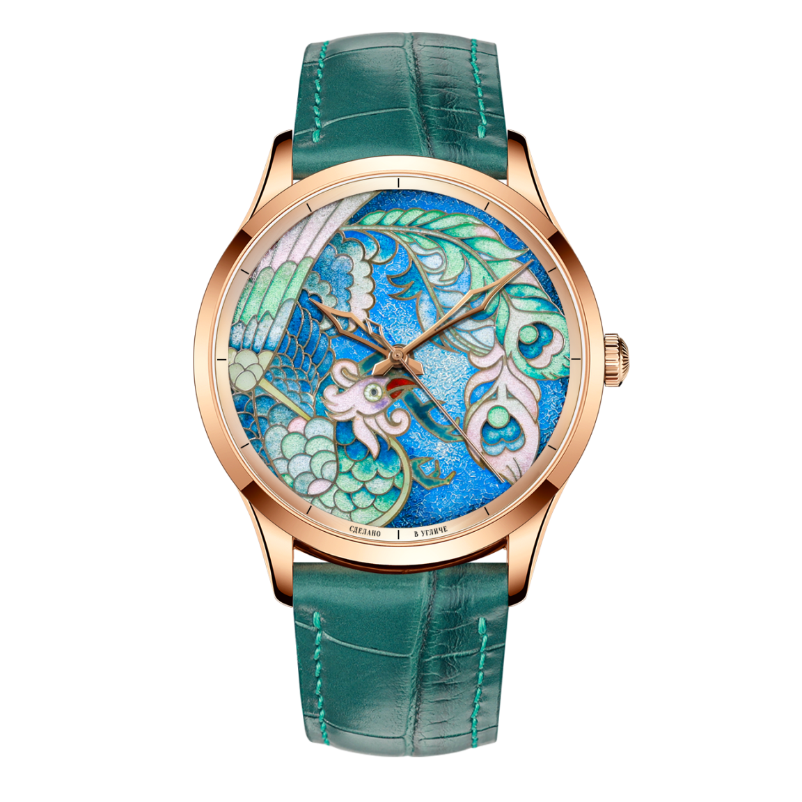 Эти часы — больше чем аксессуар: выполненные в древней и наиболее сложной технике — горячей эмали, они воплощают один из самых почитаемых символов китайской культуры. Феникс (Фэн Хуан) в Китае символизирует гармонию, процветание и императорскую власть, а его образ выполнен по образцам предметов китайского искусства. Цветовая палитра с лазурными и бирюзовыми оттенками символизирует духовность и вечность. Эти часы — не просто аксессуар, а талисман, несущий пожелания удачи, мудрости и силы. Это мост между древней философией и современным мастерством, идеальный спутник для человека, устремленного в будущее, но ценящего мудрость прошлого.