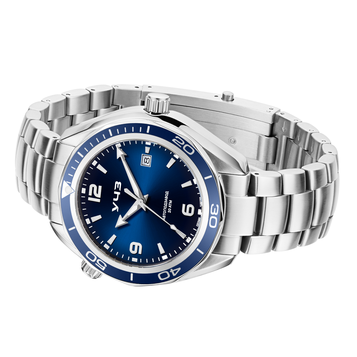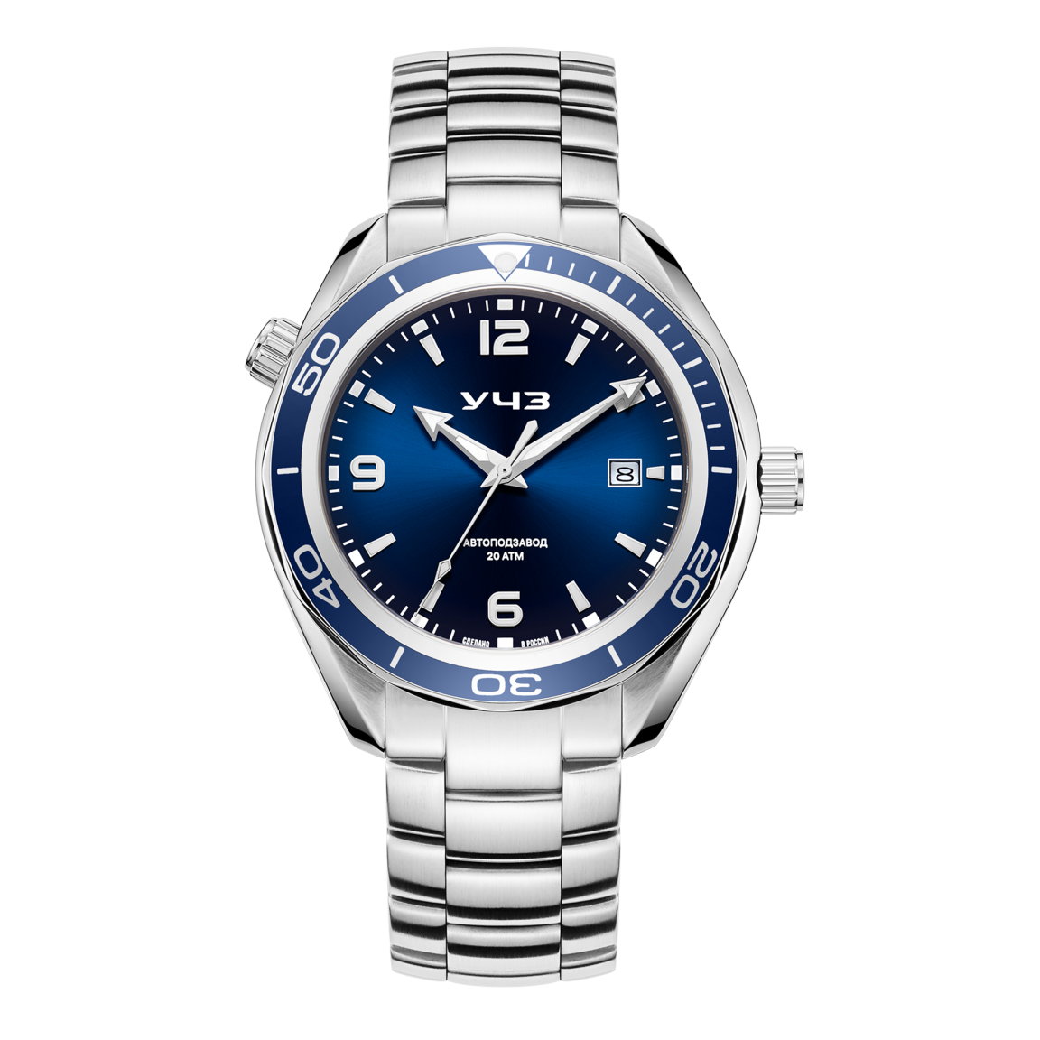 Эти мужские дайверские часы сочетают в себе надежность и стиль. Стальной корпус диаметром 44 мм с матовой полировкой и глянцевой фаской придает часам элегантный вид, а вставка слева имитирует дополнительную переводную головку, напоминая нам секундомер или таймер. Циферблат с объемными люминесцентными индексами и стрелками обеспечивает отличную видимость в темноте. Однонаправленный безель позволяет точно отслеживать время погружения, а водозащита до 20 АТМ гарантирует надежность в глубокой воде. Сапфировое стекло устойчиво к царапинам, а механизм Miyota 8215 с автоподзаводом и запасом хода 42ч. обеспечивает точность и автономность. Матовый стальной браслет завершает образ прочностью и комфортом. Модель идеально подходит как для активного дайвинга, так и для стильного повседневного ношения, сочетая технические преимущества и универсальный дизайн.