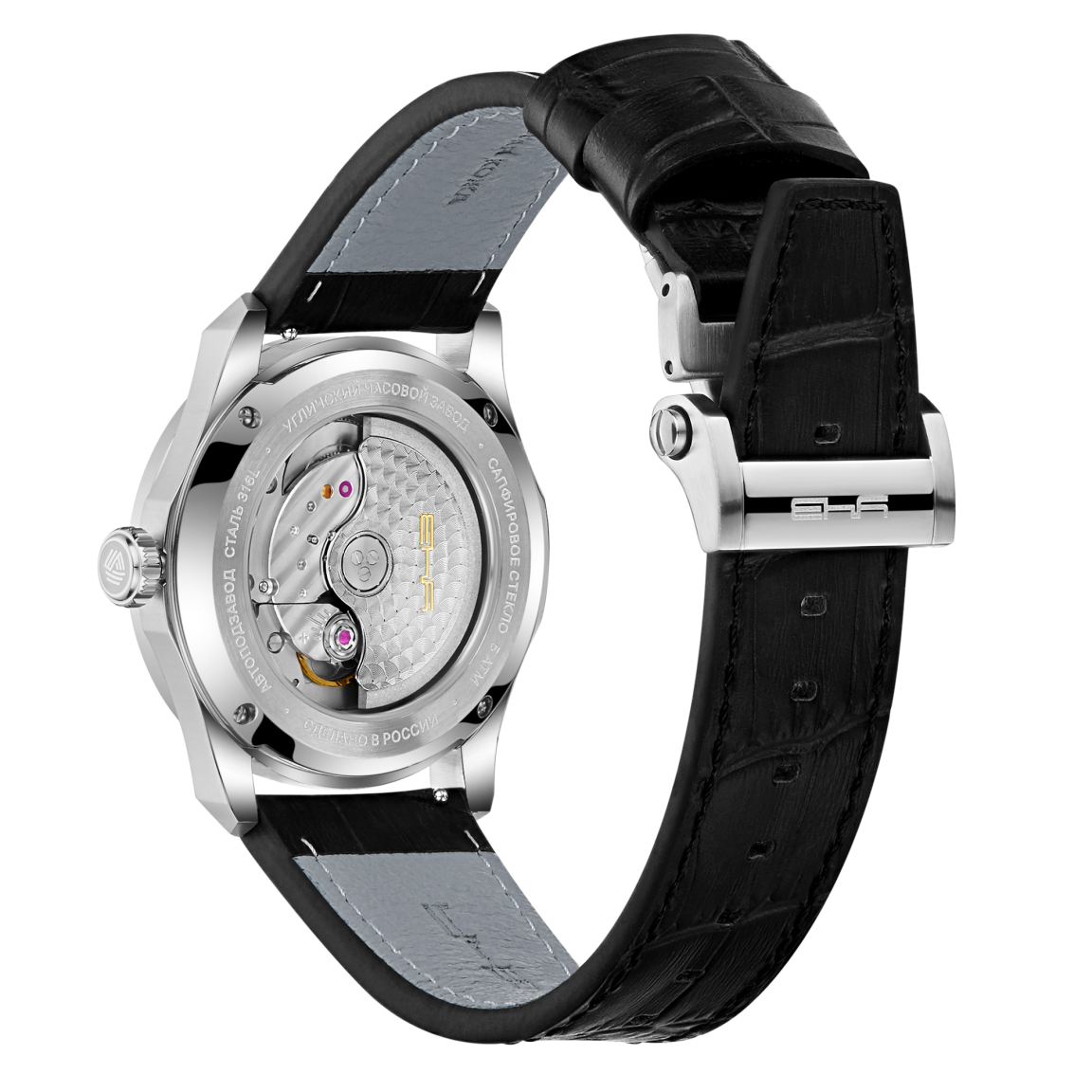 • Корпус изготовлен из высококачественной нержавеющей стали марки 316L. Комбинация горизонтального сатинирования и зеркальной полировки на гранях создает выразительную игру света, а универсальный размер обеспечивает комфортную посадку на запястье. Надежную защиту циферблата и премиальный вид гарантирует сапфировое стекло с антибликовым покрытием.