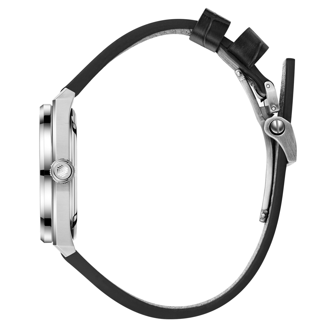 • Выберите свой стиль: цельнометаллический браслет с надежной застежкой-бабочкой или классический кожаный ремешок с текстурой под кожу крокодила. Оба варианта оснащены быстросъемными штифтами для легкой смены и фирменной раскладывающейся литой пряжкой для удобного ношения.
