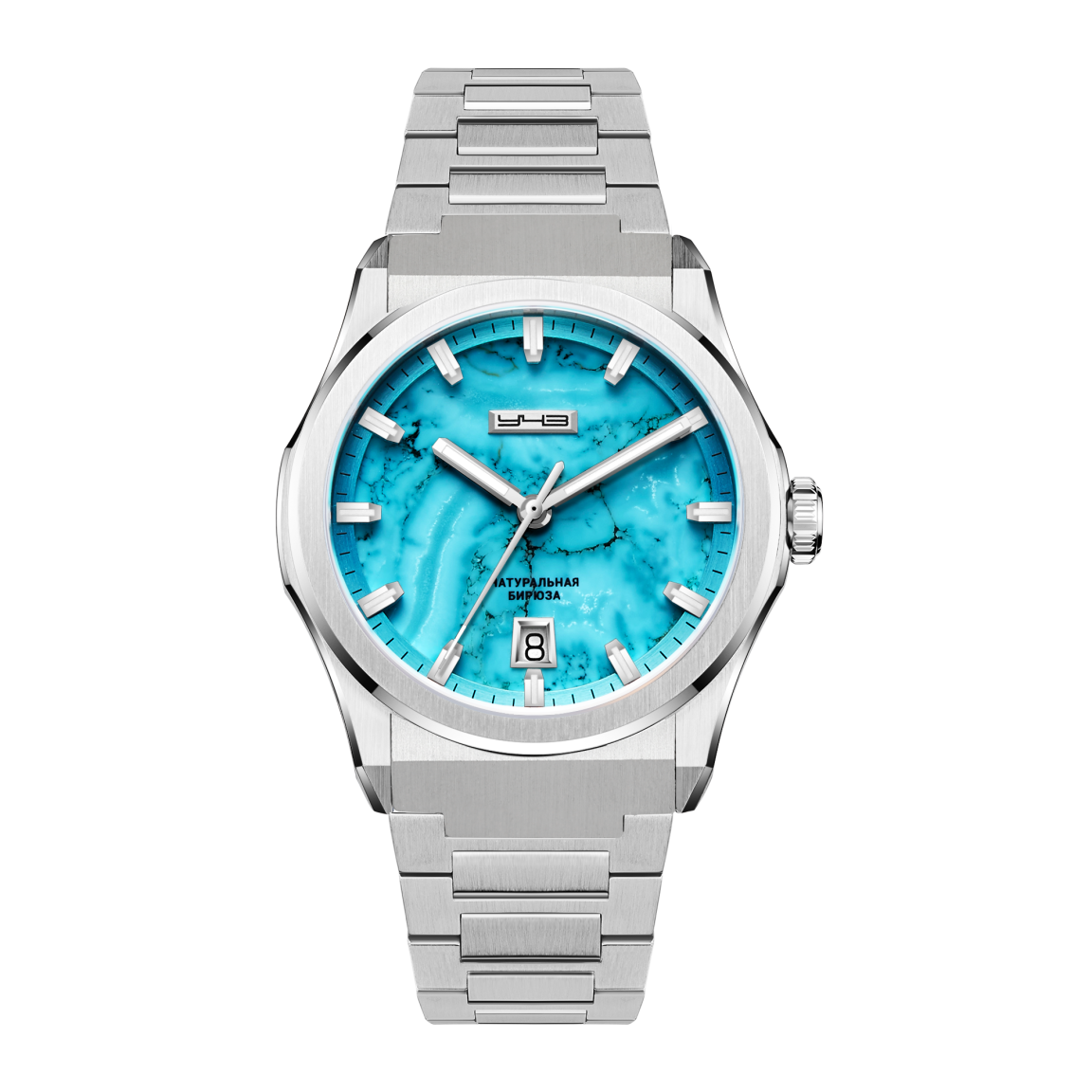 Великолепие камня защищено сапфировым стеклом с антибликовым покрытием и обрамлено корпусом из стали 316L с комбинацией сатинирования и полировки. Высокую читаемость в темноте обеспечивает покрытие Swiss SuperLuminova, а за точный ход отвечает автоматический механизм Miyota 9015, чью работу и искусно декорированный ротор видно через прозрачную заднюю крышку. Комплектацию завершает стальной браслет с надежной застежкой-бабочкой или кожаный ремешок с текстурой под крокодила, оснащенный быстросъемными штифтами и фирменной раскладывающейся литой пряжкой. Водозащита 5 АТМ делают эту модель готовой к ежедневному использованию. Это часы для тех, чье время имеет свой, неповторимый оттенок.