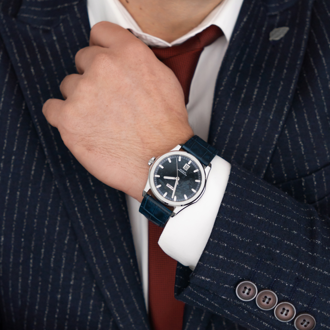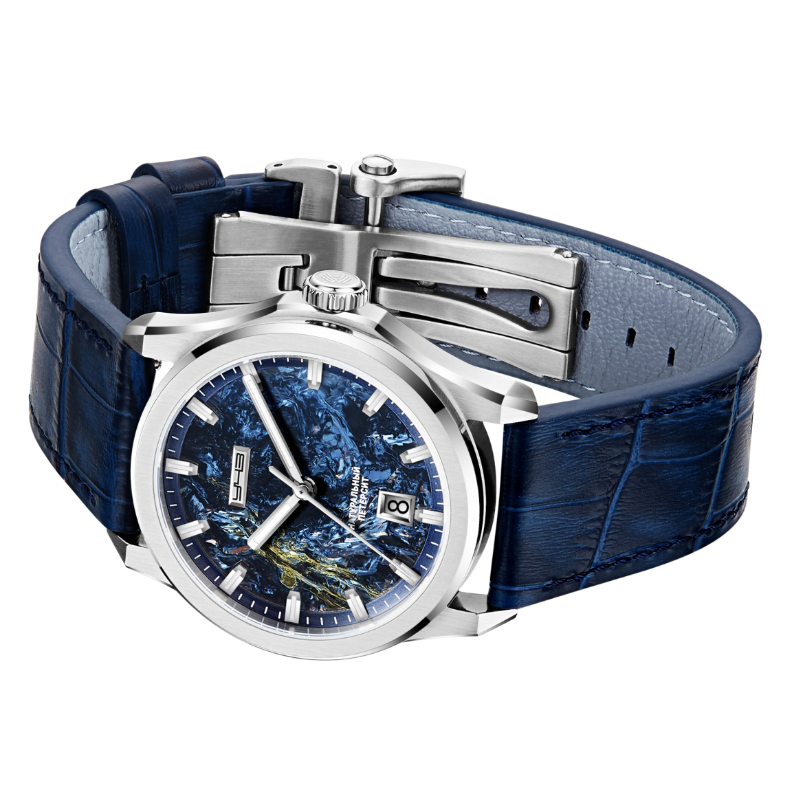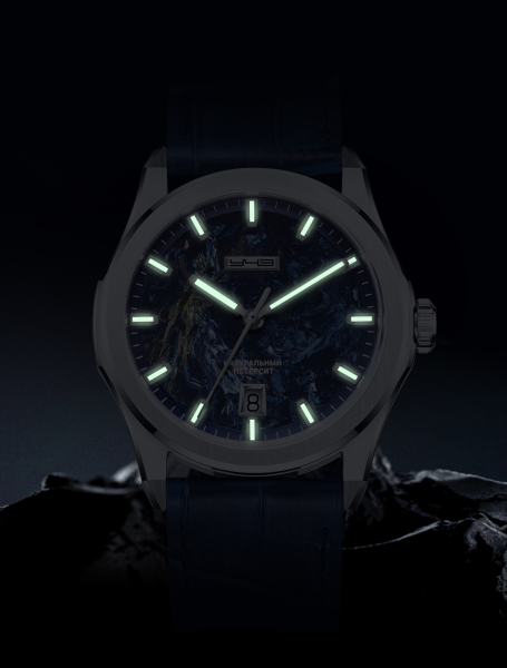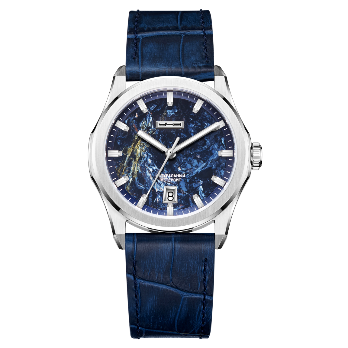 Великолепие камня защищено сапфировым стеклом с антибликовым покрытием и обрамлено корпусом из стали 316L с комбинацией сатинирования и полировки. Высокую читаемость в темноте обеспечивает покрытие Swiss SuperLuminova, а за точный ход отвечает автоматический механизм Miyota 9015, чью работу и искусно декорированный ротор видно через прозрачную заднюю крышку. Комплектацию завершает стальной браслет с надежной застежкой-бабочкой или кожаный ремешок с текстурой под крокодила, оснащенный быстросъемными штифтами и фирменной раскладывающейся литой пряжкой. Водозащита 5 АТМ делают эту модель готовой к ежедневному использованию. Это часы для тех, чье время имеет свой, неповторимый оттенок.
