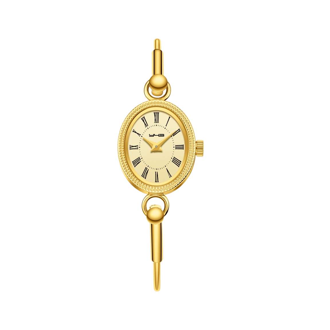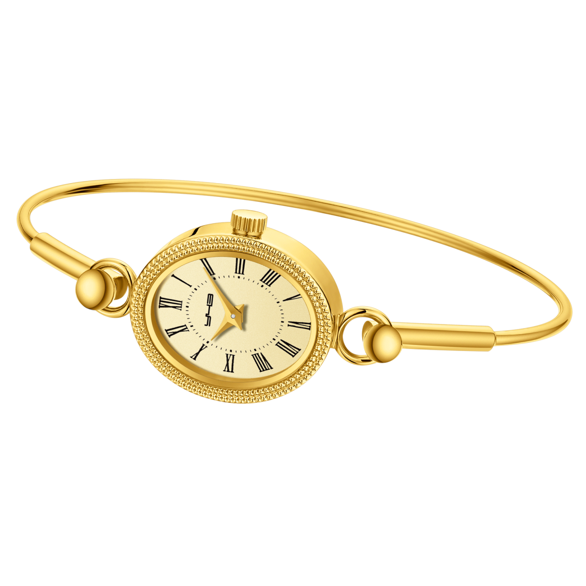 Основная особенность данной модели - жесткий, почти невесомый браслет-обруч, который крепится к корпусу вручную, создавая ощущение лёгкости и особой утончённости — часы сидят на запястье элегантно, как изысканное украшение без лишних деталей. Благодаря двум размерам (18.5 и 20 см.) становится легко подобрать комфортный вариант для любого запястья, а корпус (19,5х16 мм.) с филигранной гравировкой по безелю и лаконичные римские индексы на циферблате подчёркивают винтажный стиль модели. За точность хода отвечает надёжный японский кварцевый механизм с заранее установленным элементом питания, а водозащита 3 АТМ позволяет не беспокоиться о дожде или случайных каплях.