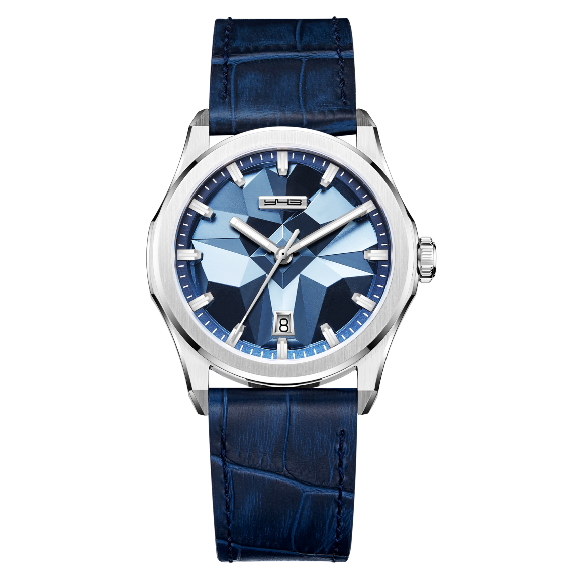 В центре внимания этих мужских часов — уникальный стальной циферблат. Его поверхность украшена искусным объемным тиснением, имитирующим мощь и фактуру горного хребта. Этот динамичный рельеф, играющий со светом, сочетается с безупречной утилитарностью: на позиции «6» расположено окно календаря, а стрелки и индексы покрыты ярким люминофором Swiss SuperLuminova для безупречной читаемости в любое время суток. Над циферблатом расположено сапфировое стекло с антибликовым покрытием, а корпус из сатинированной и полированной стали 316L обеспечивает водонепроницаемость до 5 АТМ. В сердце модели — точный механизм Miyota 9015 с запасом хода 42 часа, вид на декорированный ротор которого открывается через прозрачную заднюю крышку. Комплектацию завершает стальной браслет с надежной застежкой-бабочкой или кожаный ремешок с текстурой под крокодила, оснащенный быстросъемными штифтами и фирменной раскладывающейся литой пряжкой.