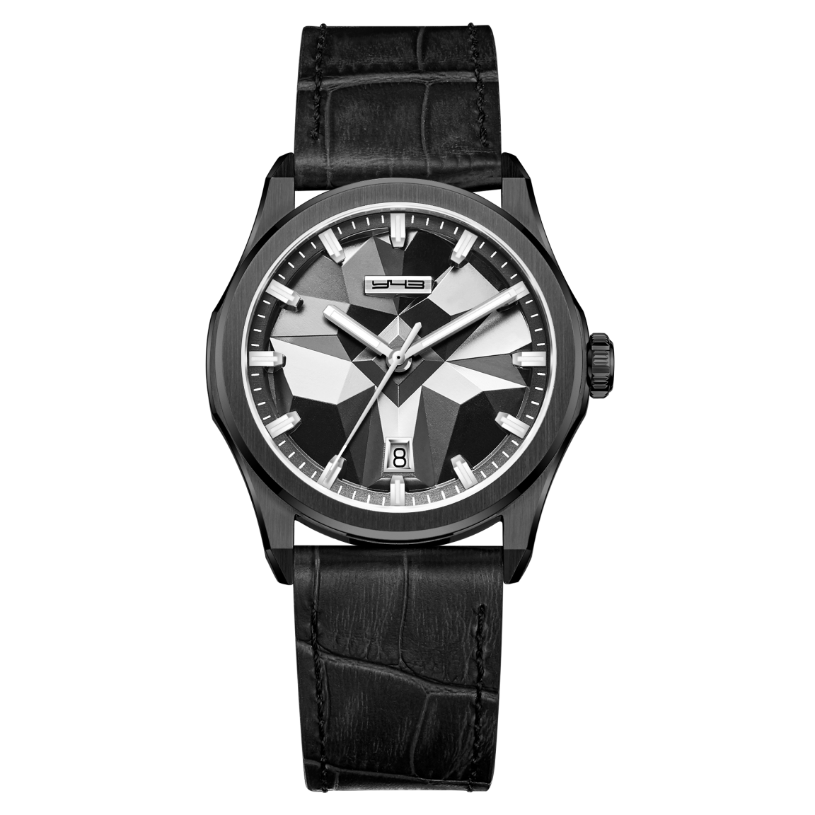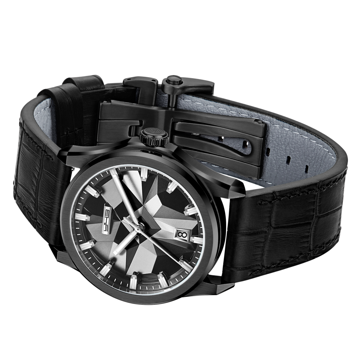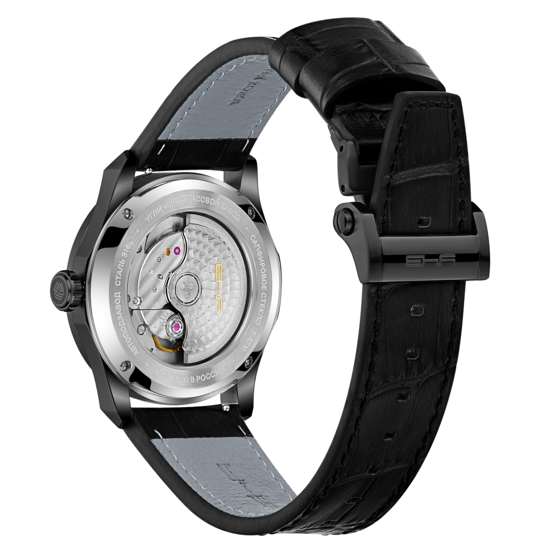 В центре внимания этих мужских часов — уникальный стальной циферблат. Его поверхность украшена искусным объемным тиснением, имитирующим мощь и фактуру горного хребта. Этот динамичный рельеф, играющий со светом, сочетается с безупречной утилитарностью: на позиции «6» расположено окно календаря, а стрелки и индексы покрыты ярким люминофором Swiss SuperLuminova для безупречной читаемости в любое время суток. Над циферблатом расположено сапфировое стекло с антибликовым покрытием, а корпус из сатинированной и полированной стали 316L обеспечивает водонепроницаемость до 5 АТМ. В сердце модели — точный механизм Miyota 9015 с запасом хода 42 часа, вид на декорированный ротор которого открывается через прозрачную заднюю крышку. Комплектацию завершает стальной браслет с надежной застежкой-бабочкой или кожаный ремешок с текстурой под крокодила, оснащенный быстросъемными штифтами и фирменной раскладывающейся литой пряжкой.