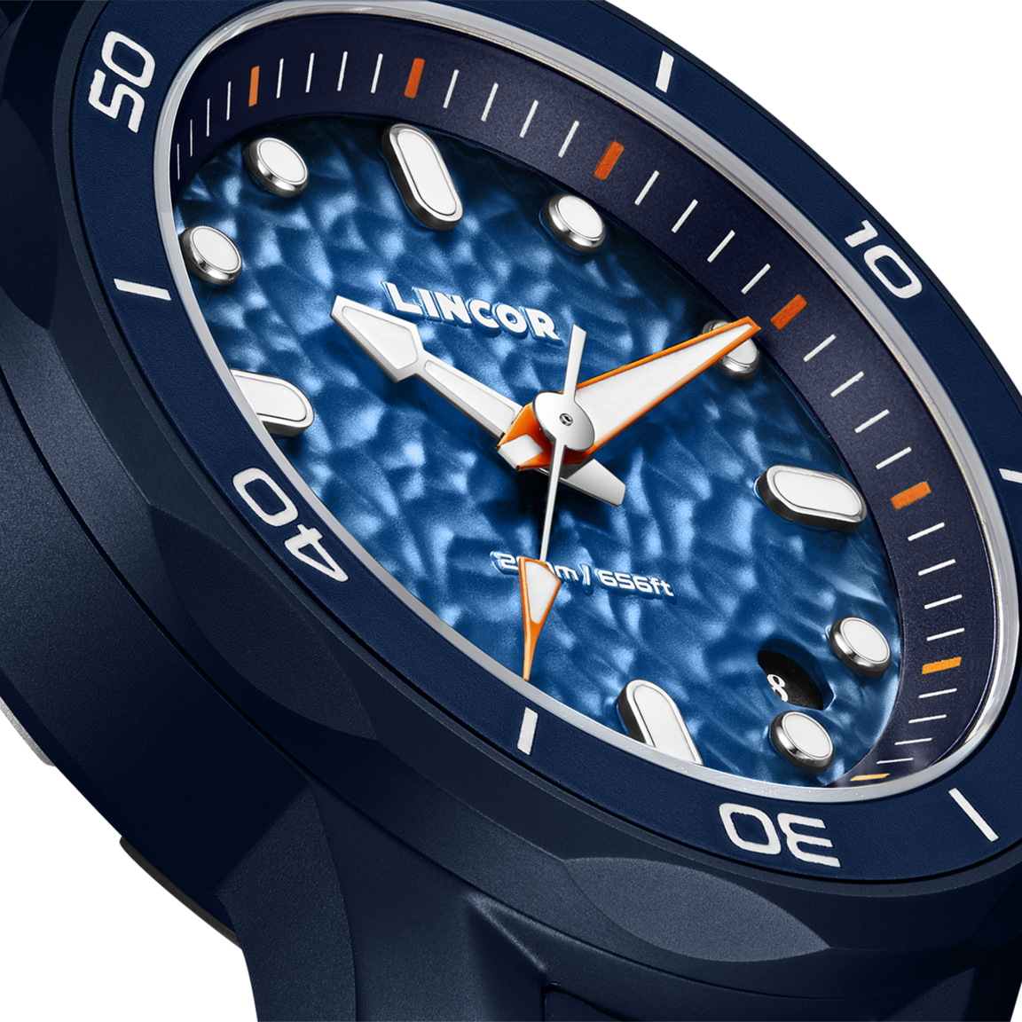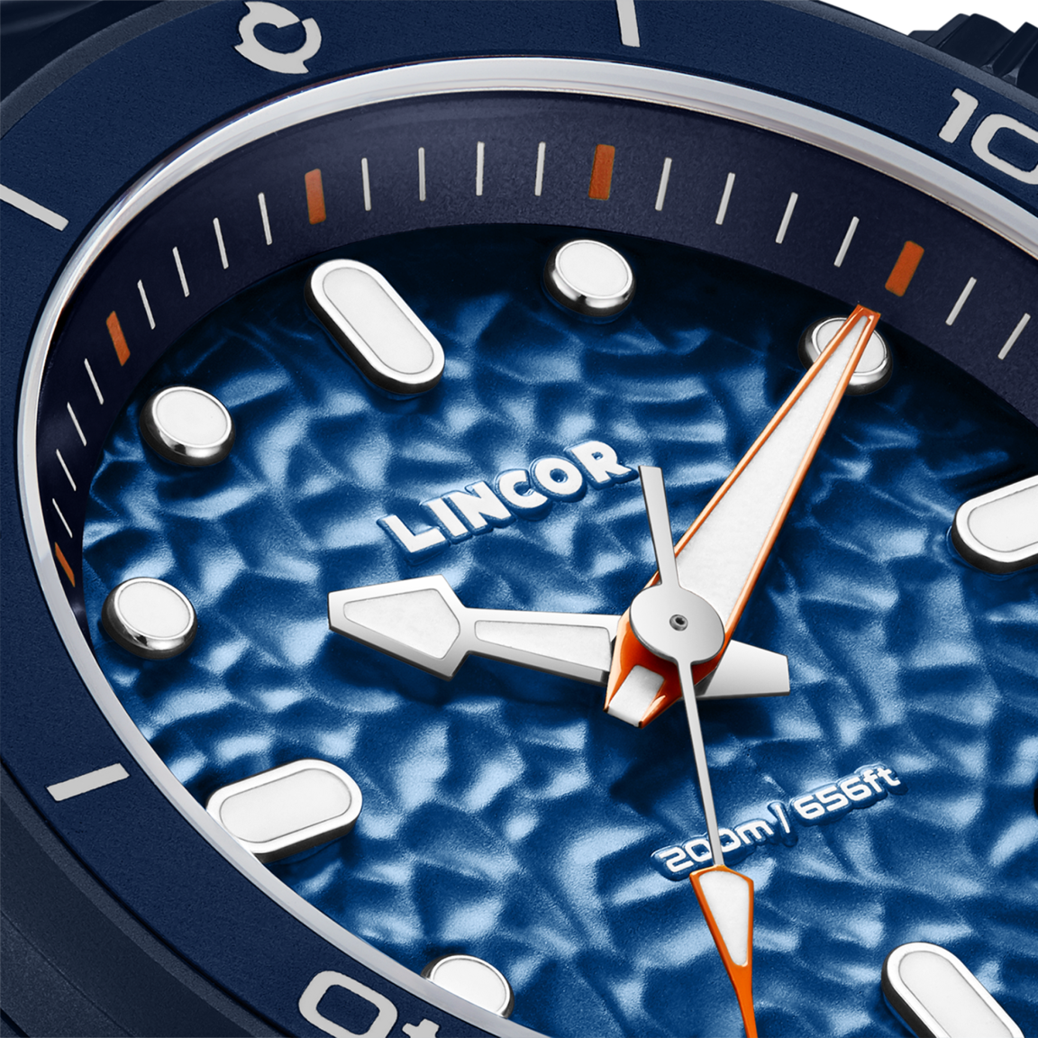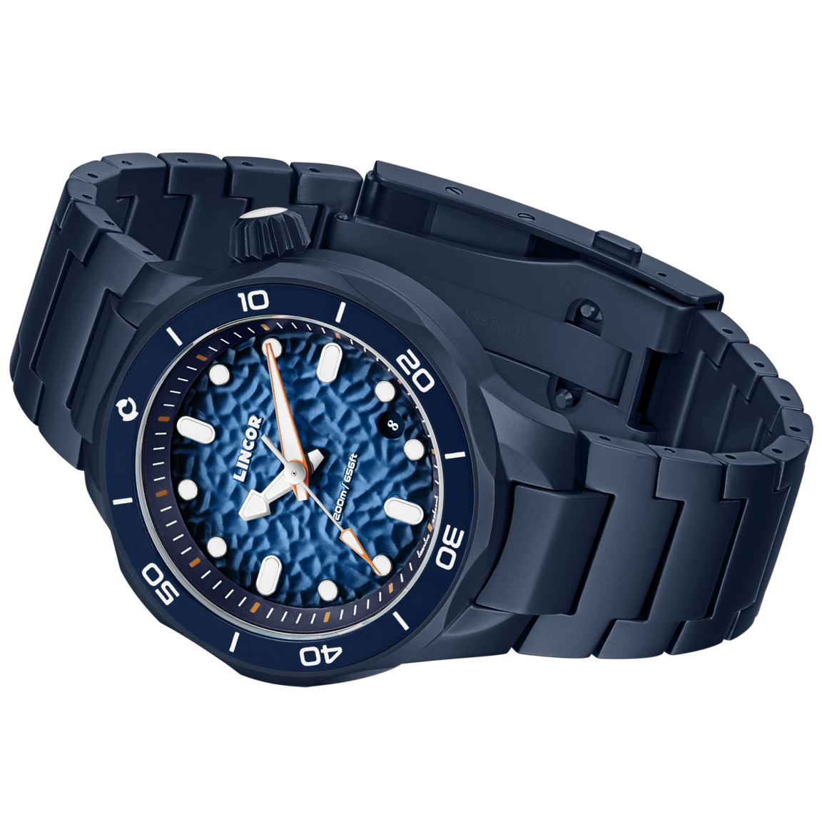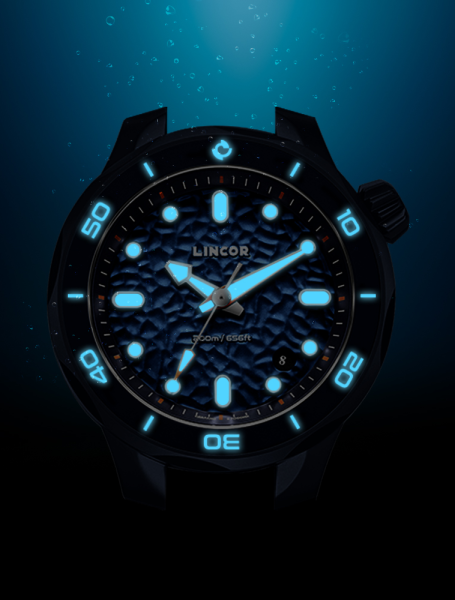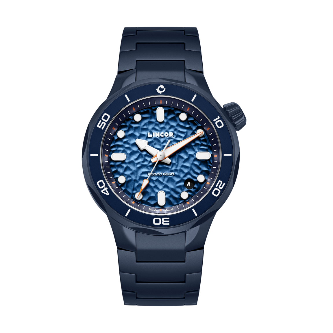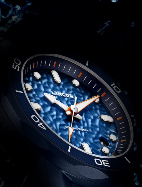 • Представьте песчаное дно океана, куда веками падали раковины, формируя уникальный рельеф. Именно этот образ воплощен в объемной текстуре циферблата. Каждая линия и изгиб здесь создают игру света и тени, напоминая о том, что время течет так же неспешно, как океанское течение. Объемные индексы, словно коралловые рифы, выступают над поверхностью, а утопленное окошко календаря аккуратно вписано в пейзаж, не нарушая его целостности. Фигурные стрелки с хищным изгибом парят над этим рельефом, готовые в любой момент указать путь.