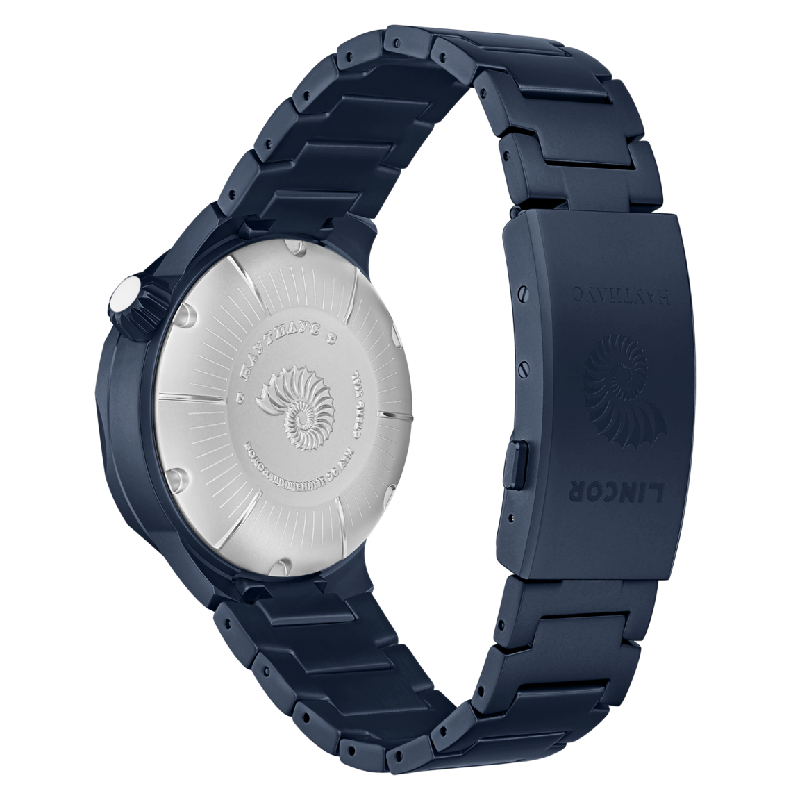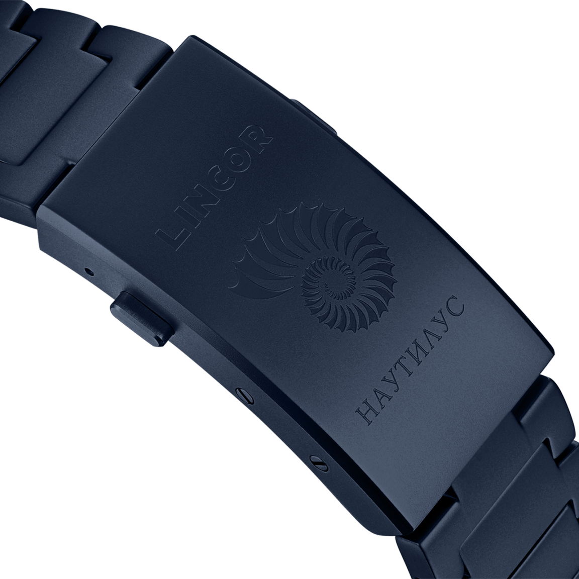 • Корпус и браслет выполнены из нержавеющей стали 316L — сплава, максимально устойчивого к агрессивной соленой среде. Односторонний вращающийся безель оснащен светящимися метками: подобно тому, как наутилус строит свои камеры, вы строите свой маршрут, отмеряя минуты погружения. На задней крышке методом объемной чеканки изображен сам наутилус — напоминание о том, что идеальная спираль его раковины стала прообразом многих инженерных решений.