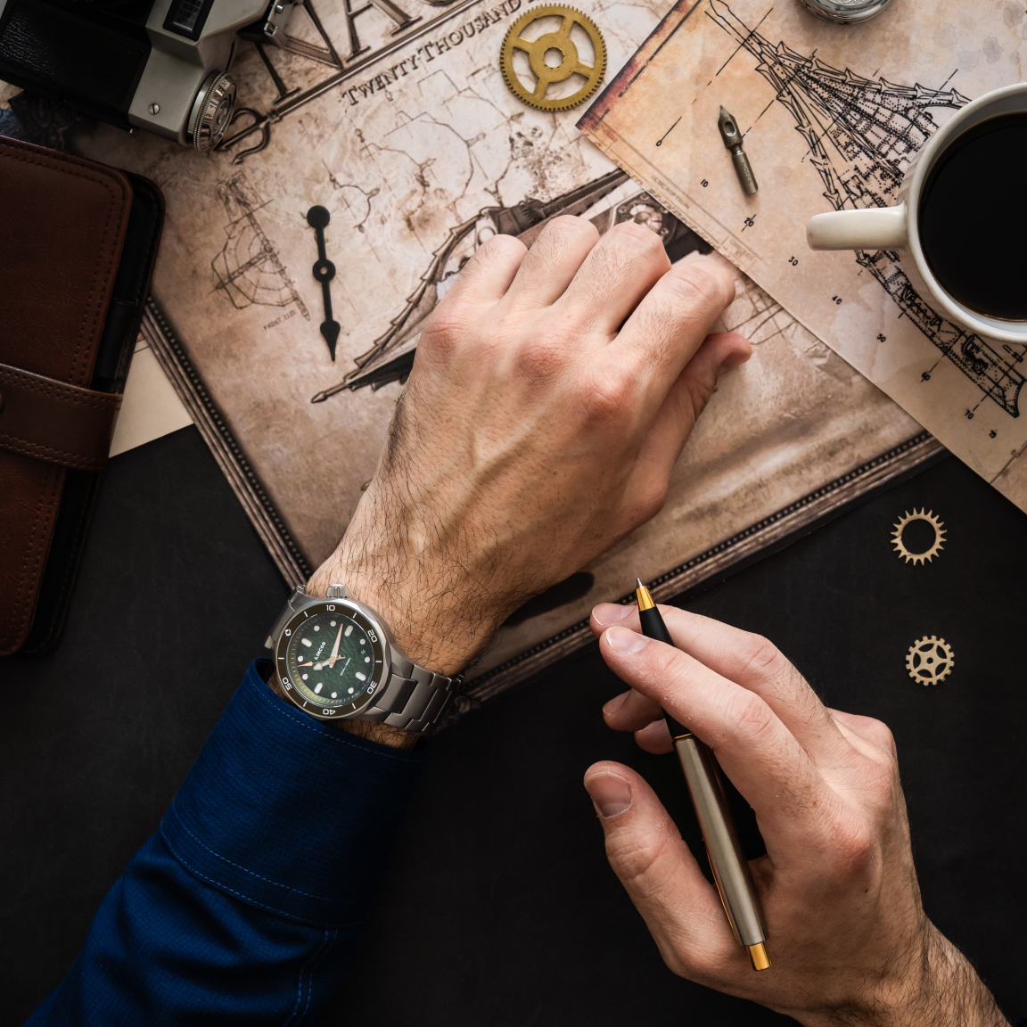 Часы «Наутилус» — это застывшая в стали ода природной геометрии. Циферблат напоминает рельеф песчаного дна, по которому скользят фигурные стрелки, похожие на очертания экзотических рыб. Мощная раковина корпуса из хирургической стали 316L готова принять на себя давление любой глубины. Но главный секрет скрыт на тыльной стороне: там, где сердце встречается с запястьем, красуется объемный барельеф наутилуса — моллюска, ставшего символом «золотого сечения» в природе. Завинчивающаяся головка, словно глаз моллюска, светится в темноте, подавая сигнал жизни там, куда не проникает солнечный свет.