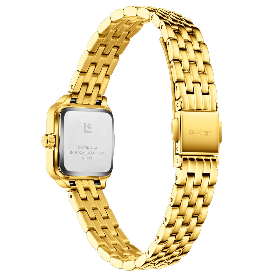 Миниатюрный квадратный корпус из полированной стали 316L (19,5х24 мм) по периметру искусно инкрустирован фианитами. Сапфировое стекло надежно защищает циферблат, где строгие римские цифры создают идеальный контраст. Внутри бьется точный японский кварцевый механизм, а стальной браслет с застежкой-бабочкой мягко обхватывает запястье. Водозащита 3 АТМ позволяет не беспокоиться о случайных брызгах, делая эту модель не просто украшением, а верным компаньоном в ритме большого города.