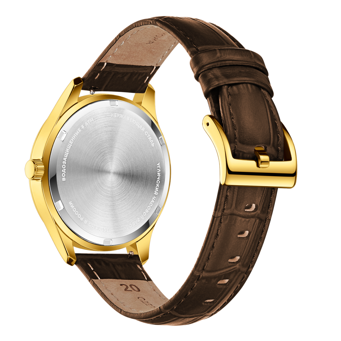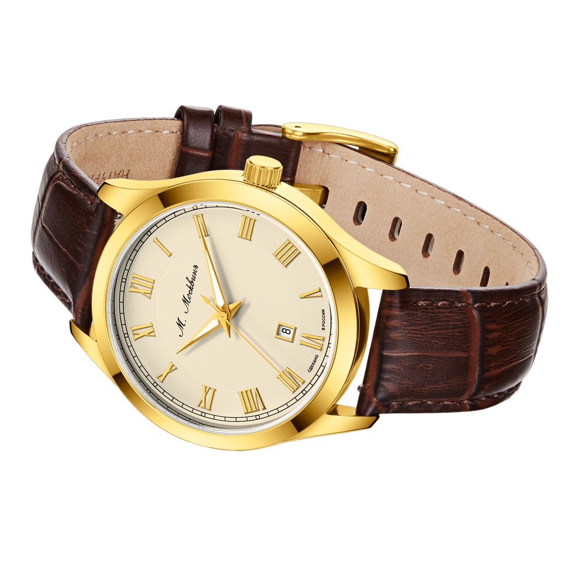 Аксессуар воплощает сдержанную элегантность для мужчин, ценящих безупречный стиль. Корпус диаметром 41 мм выполнен из высококачественной стали, обеспечивая идеальную посадку. Центром композиции выступает циферблат с аристократичными римскими индексами и изящными фигурными стрелками. Под стеклом работает японский кварцевый калибр, гарантирующий исключительную точность и неприхотливость. Водозащита 5 АТМ защищает механизм от дождя и брызг. Завершает образ ремешок из натуральной кожи с тиснением под аллигатора, подчеркивающий статусность аксессуара в любой обстановке. Тыльная сторона корпуса станет идеальным холстом для памятной гравировки, превращая часы в по-настоящему уникальный аксессуар или значимый подарок.