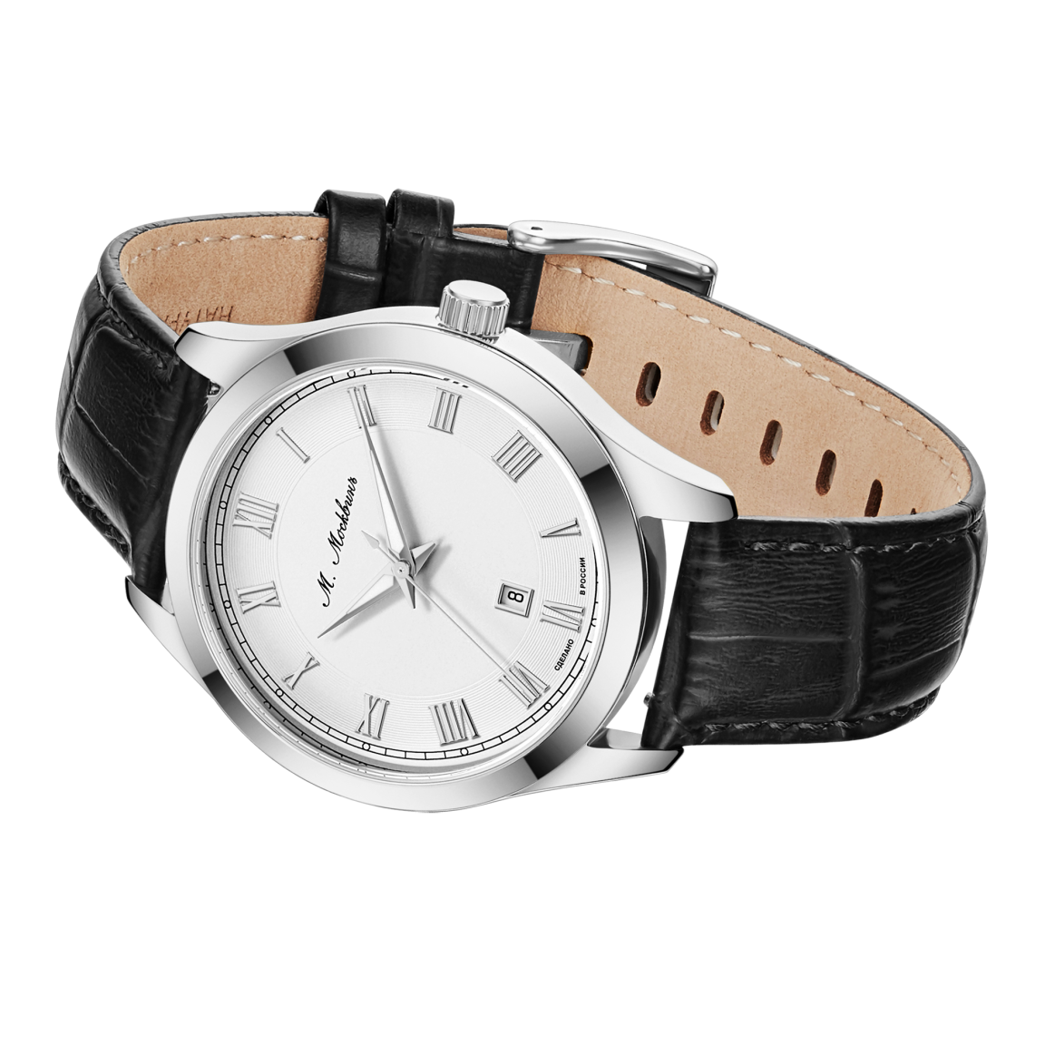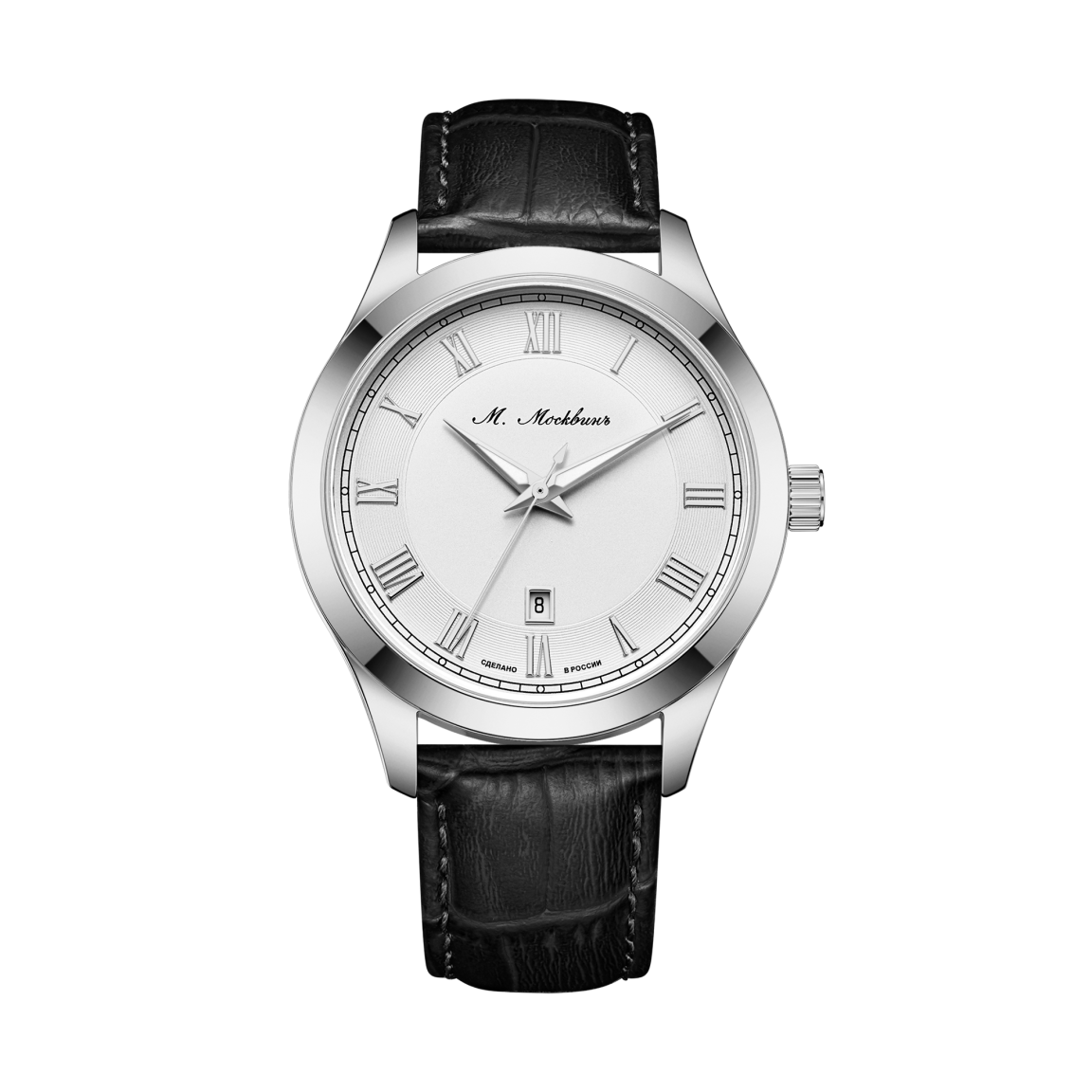Аксессуар воплощает сдержанную элегантность для мужчин, ценящих безупречный стиль. Корпус диаметром 41 мм выполнен из высококачественной стали, обеспечивая идеальную посадку. Центром композиции выступает циферблат с аристократичными римскими индексами и изящными фигурными стрелками. Под стеклом работает японский кварцевый калибр, гарантирующий исключительную точность и неприхотливость. Водозащита 5 АТМ защищает механизм от дождя и брызг. Завершает образ ремешок из натуральной кожи с тиснением под аллигатора, подчеркивающий статусность аксессуара в любой обстановке. Тыльная сторона корпуса станет идеальным холстом для памятной гравировки, превращая часы в по-настоящему уникальный аксессуар или значимый подарок.