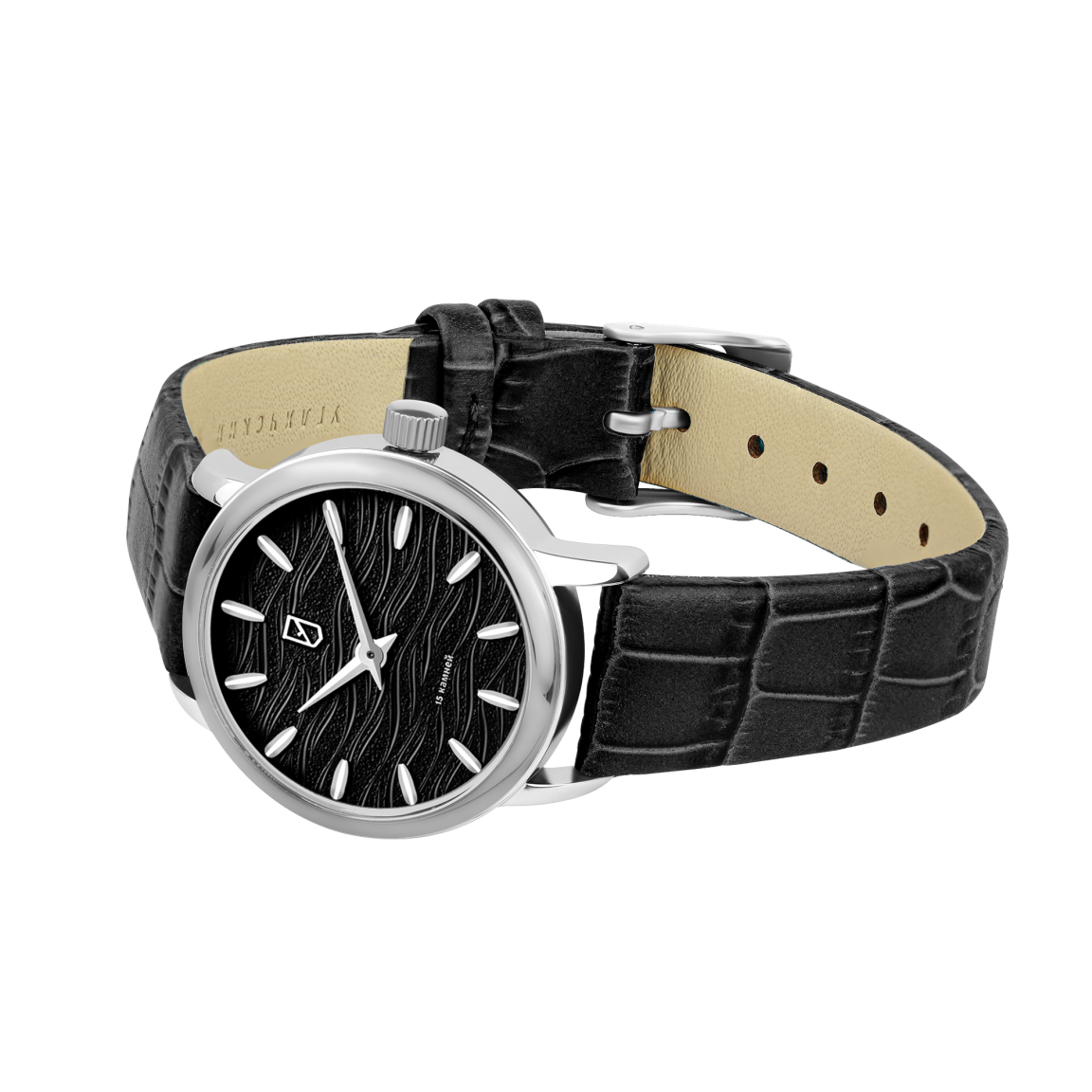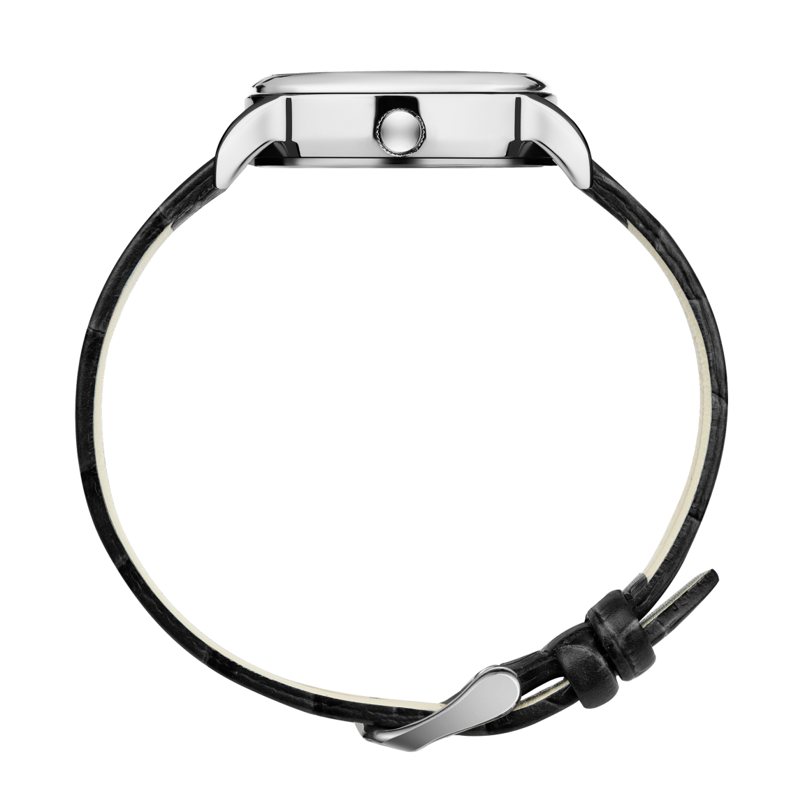Сдержанный классический, но в то же время яркий циферблат часов Михаил Москвин обрамлен строгим корпусом с водонепроницаемостью 3 АТМ и дополнен изящными индексами, идеально сочетающимися с рельефными стрелками.