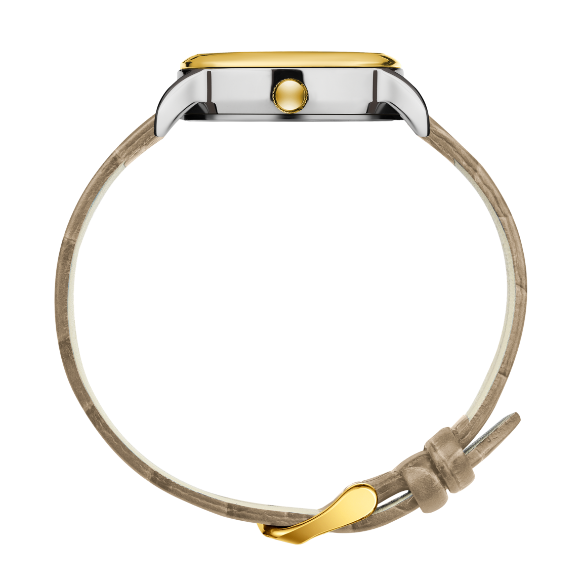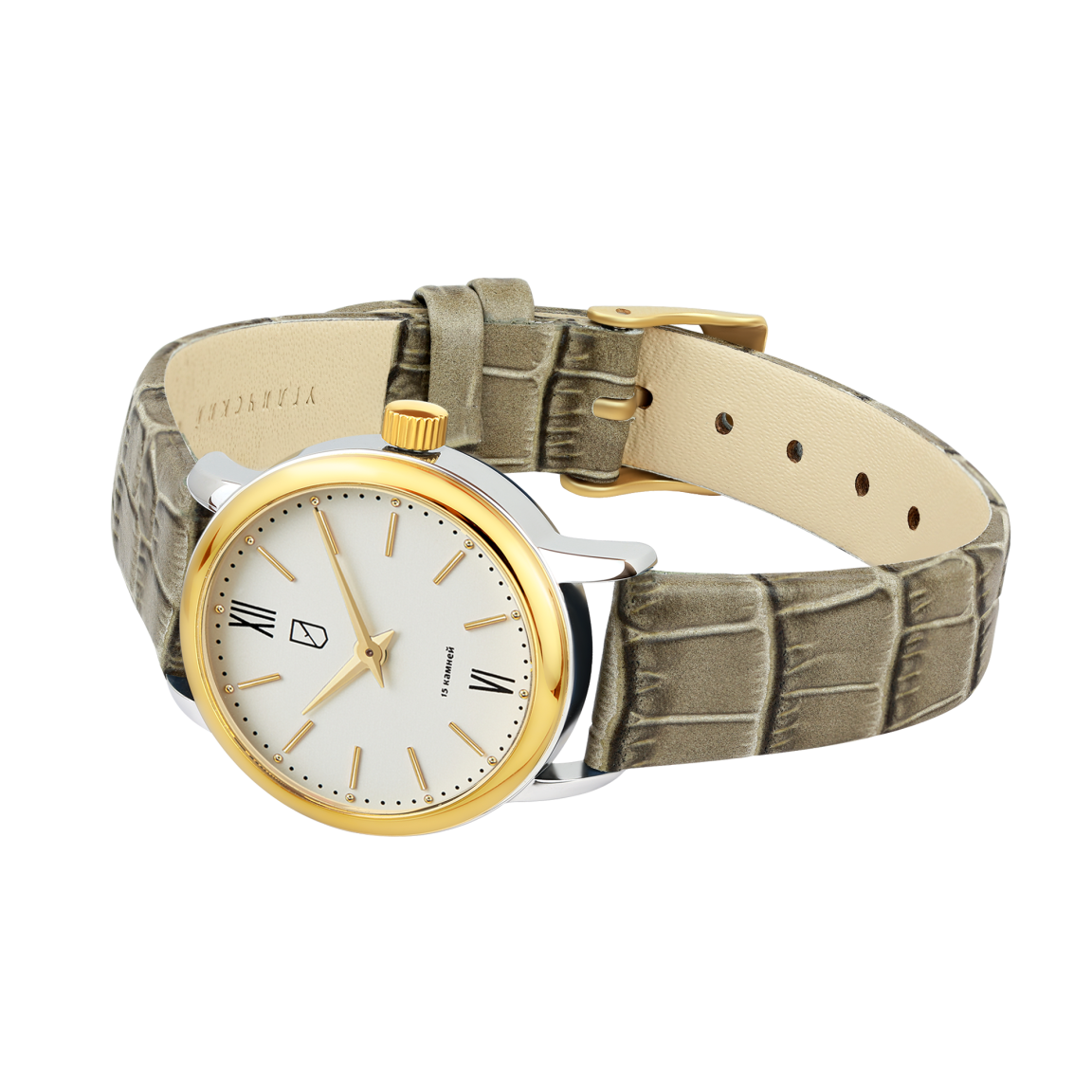 Гармонично дополняет и завершает образ модели идеально подобранный в тон ремешок из натуральной кожи.