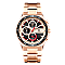 Многофункциональные мужские часы в спортивном стиле подойдут для обладателя крупного запястья. Массивный корпус размером 52 мм. и толщиной 11 мм. дополнен безелем, на котором нанесены минутные значения. На циферблате расположены объемные индексы и стрелки с люминесцентным покрытием, что обеспечивает идеальное считывание показаний как в светлое, так и темное время суток. Сбоку корпуса установлена крупная резная переводная головка и кнопки, которые отвечают за работу дополнительных функций: календаря и дня недели. За точную и бесперебойную работу часов отвечает японский кварцевый механизм.