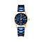 Необычные многофункциональные женские кварцевые часы. Идеально глянцевый циферблат покрыт минеральным закаленным стеклом необычной приподнятой формы с едва заметным напылением голубого цвета. Благодаря этим особенностям создается эффект объема и ощущение, будто часы светятся изнутри. Циферблат дополняют три вынесенных поля: 24-часовая шкала, день недели, день месяца. Внутри 33-мм корпуса установлен японский кварцевый механизм. Браслет собран из чередующихся звеньев глянцевой и матовой фактур.