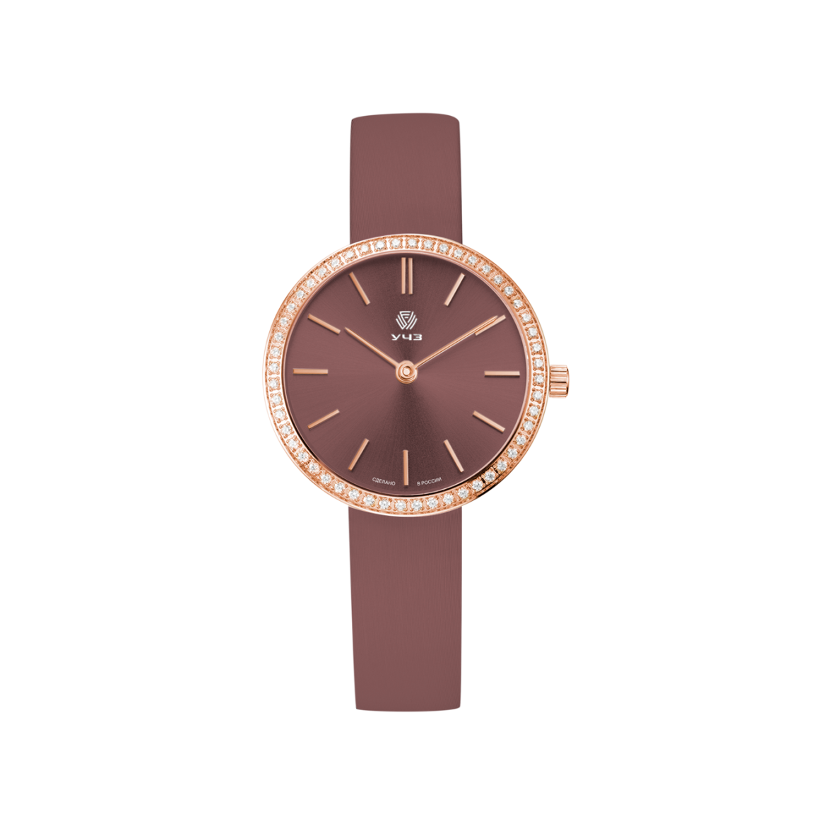 Яркий оттенок в сочетании с роскошным блеском создают незабываемый стиль модели из серии УЧЗ 3050. Женские кварцевые часы, которые украсят свою обладательницу. Кто она? Та, что любит яркие цвета и не боится выделяться. Идеально гладкий с изящными переливами циферблат идеально сочетается с сатинированным ремешком насыщенного оттенка. Тонкий пояс фианитов, расположенный по диаметру 30-мм корпуса создает дополнительное сияние. Крупные индексы позволяют идеально определять время, а точность хода гарантирует надежный кварцевый механизм (Япония).