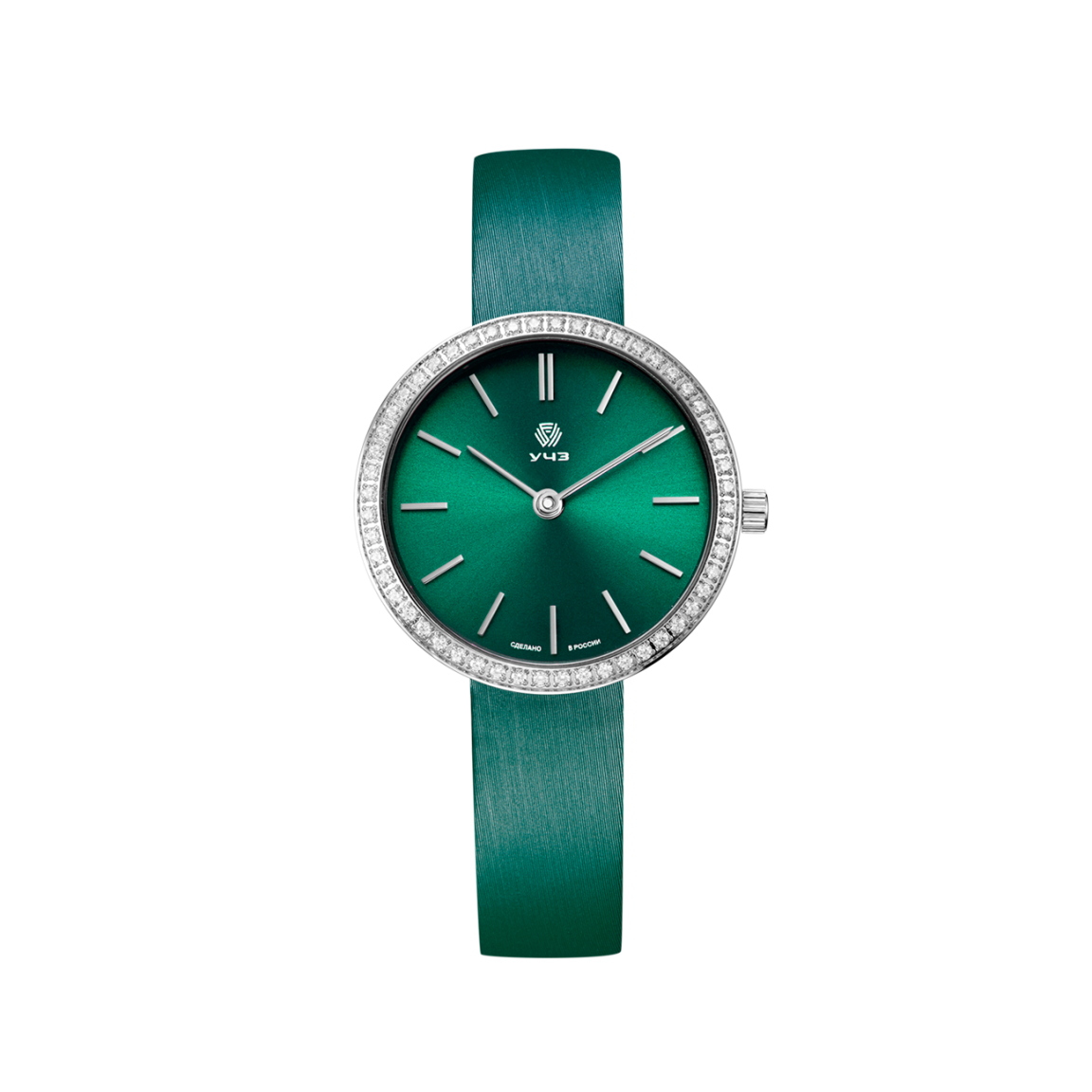 Яркий оттенок в сочетании с роскошным блеском создают незабываемый стиль модели из серии УЧЗ 3050. Женские кварцевые часы, которые украсят свою обладательницу. Кто она? Та, что любит яркие цвета и не боится выделяться. Идеально гладкий с изящными переливами циферблат идеально сочетается с сатинированным ремешком насыщенного оттенка. Тонкий пояс фианитов, расположенный по диаметру 30-мм корпуса создает дополнительное сияние. Крупные индексы позволяют идеально определять время, а точность хода гарантирует надежный кварцевый механизм (Япония).