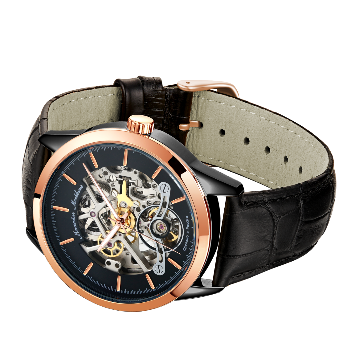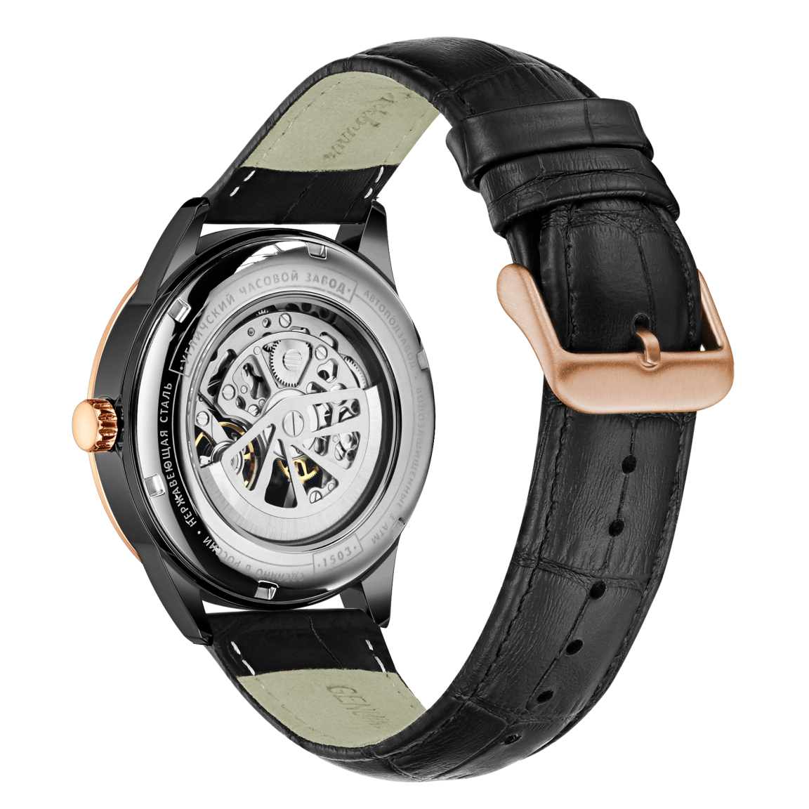Выразительный дизайн серии скелетонов по достоинству оценят любители индустриального стиля. В лаконичный 42-мм корпус встроен высокоточный механизм с автоподзаводом с запасом хода 35 часов, за работой которого можно наблюдать сквозь сапфировое стекло циферблата и заднюю крышку часов.