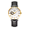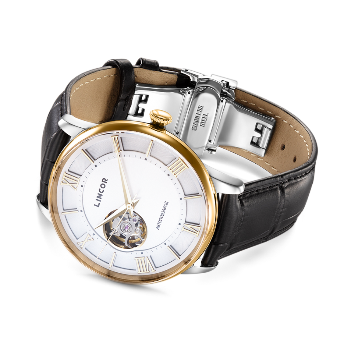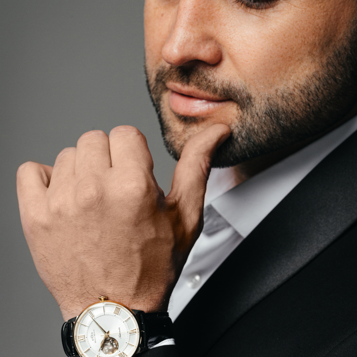Костюмные мужские часы, которые станут идеальным аксессуаром для ценителей классики, надежности и изысканности. Универсальный 41 миллиметровый корпус из нержавеющей стали обеспечивает прочность, а устойчивое к появлению царапин сапфировое стекло и водозащита 5 АТМ делают часы практичными. Циферблат с римскими индексами выполнен в строгом классическом стиле и дополнен окошком, сквозь которое, как и через прозрачную заднюю крышку, видна работа японского механизма с автоподзаводом NH38 и запасом хода 35ч. Ремешок из натуральной кожи с застежкой-бабочкой добавляет комфорта и завершенности образу.