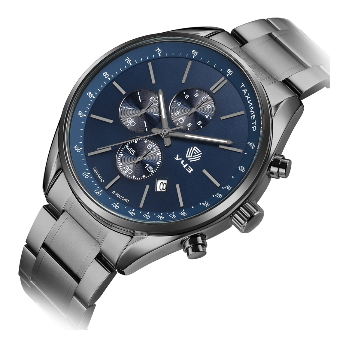 Часы пушка. Не люблю кожаные ремешки, поэтому выбирал из вариантов со стальными. Застежка-бабочка надежная, можно не переживать, что часы в любой момент расстегнутся и потеряются. Мне не было принципиально наличие хронографа и календаря, поэтому воспринял их как дополнительный бонус. Рекомендую.