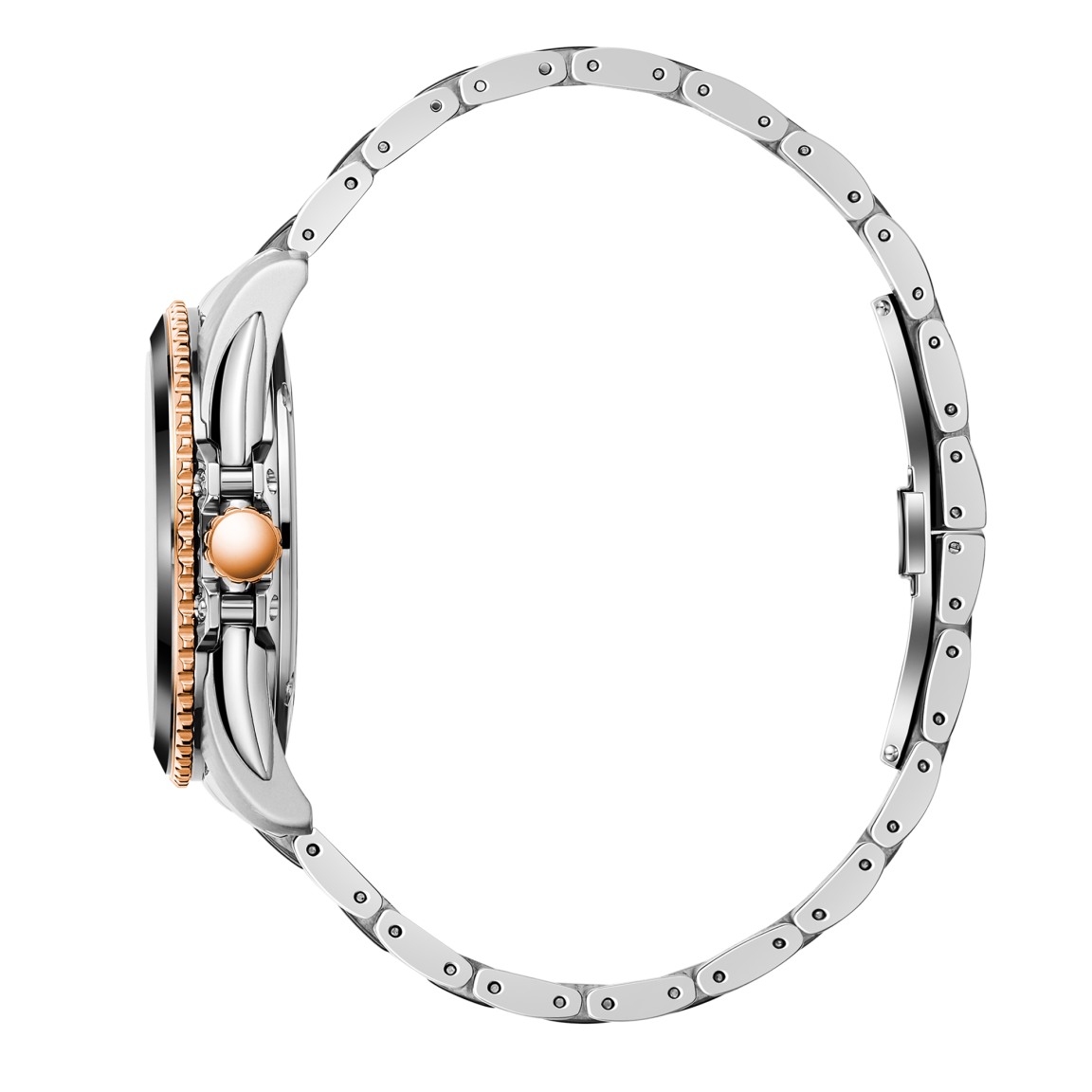 Мужские механические часы с автоподзаводом выполнены из нержавеющей стали и сочетают в себе элементы классического и спортивного стиля. Массивный корпус диаметром 42 мм декорирован рифлёным безелем со вставкой, выполненной в тон звеньев браслета. Контрастный циферблат, защищённый прочным сапфировым стеклом, дополнен функцией календаря, а накладные индексы и перекликающиеся с ними по форме стрелки имеют люминесцентное покрытие. Сквозь прозрачную заднюю крышку часов можно увидеть работу надёжного японского механизма  Miyota. Браслет часов оснащён удобной застёжкой-бабочкой, обеспечивающей дополнительный комфорт их владельцу.