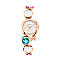 Оригинальные женские часы, браслет которых декорирован яркими кристаллами и фианитами, завораживают своим сиянием. В круглый корпус диаметром 27 мм. заключен перламутровый циферблат, дополненный лаконичными продолговатыми индексами. Изящным дополнением декорированного браслета являются прозрачные капсулы с парящими кристаллами, которые меняют своё положение при движении руки. За точность хода отвечает надёжный японский механизм Miyota 2035.
