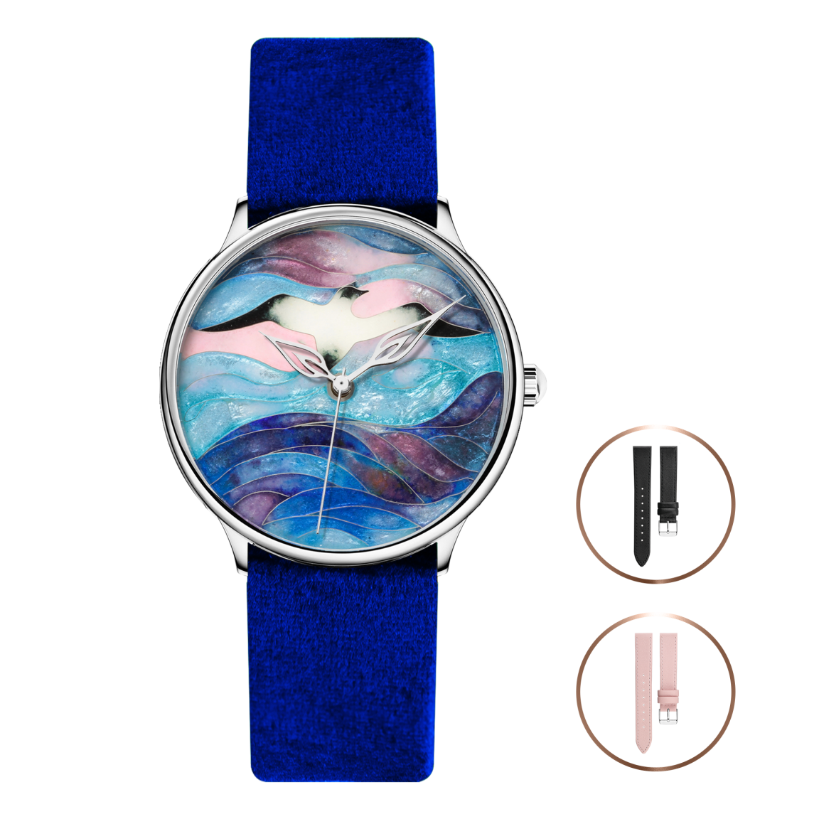 Циферблаты часов вручную изготавливаются в старинной технике горячей перегородчатой эмали, которая поражает тонкостью исполнения и завораживающими цветовыми переходами. Благодаря искусной работе мастера и магической силе огня цветной стекловидный порошок (эмаль), заполняющий тончайшие перегородки, превращается в настоящий шедевр. Технология исполнения настолько трудоёмкая, что повторить все мельчайшие элементы узора в точности невозможно, поэтому каждое изделие коллекции обладает своим собственным неординарным характером.