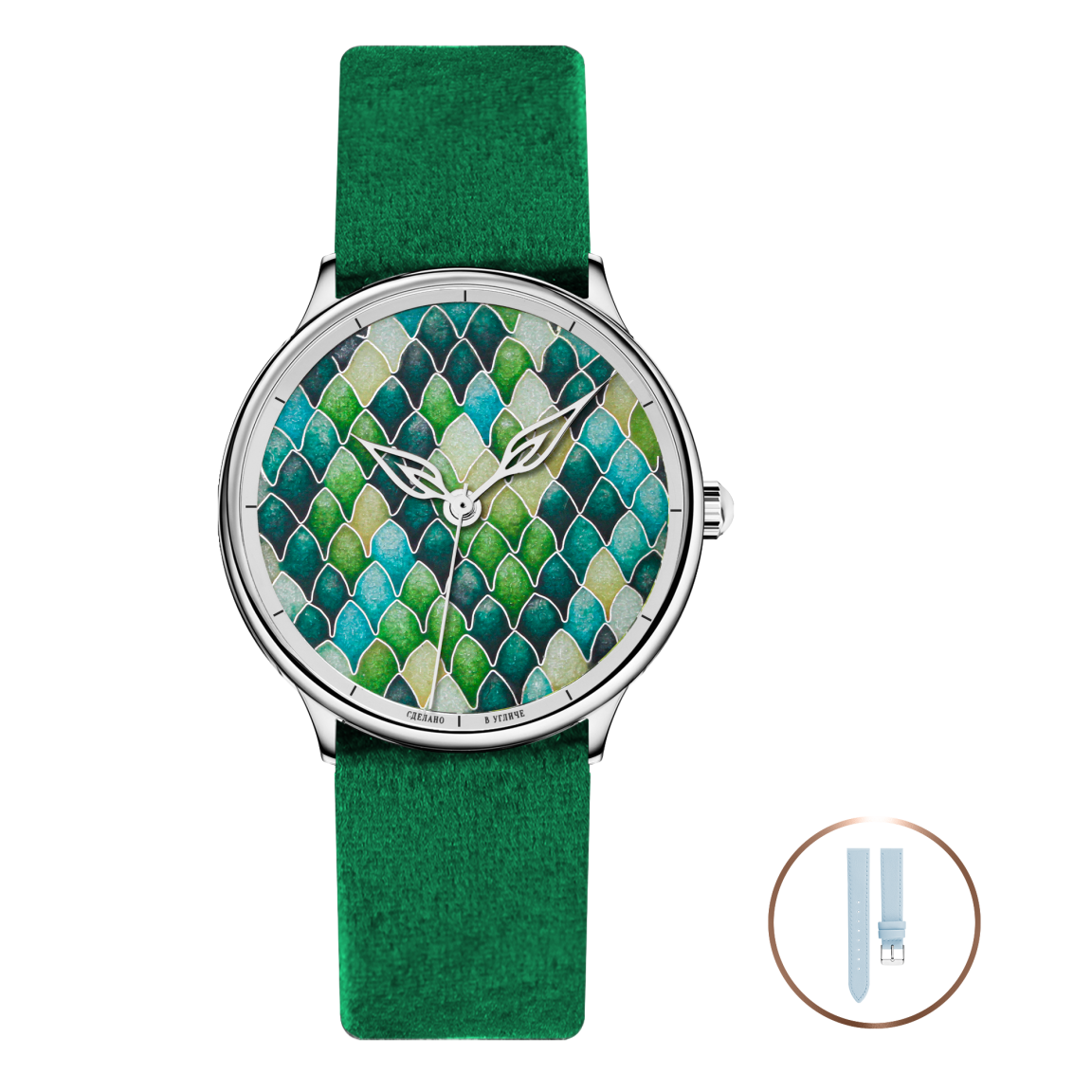 Циферблаты часов вручную изготавливаются в старинной технике горячей перегородчатой эмали, которая поражает тонкостью исполнения и завораживающими цветовыми переходами. Благодаря искусной работе мастера и магической силе огня цветной стекловидный порошок (эмаль), заполняющий тончайшие перегородки, превращается в настоящий шедевр. Технология исполнения настолько трудоёмкая, что повторить все мельчайшие элементы узора в точности невозможно, поэтому каждое изделие коллекции обладает своим собственным неординарным характером.
