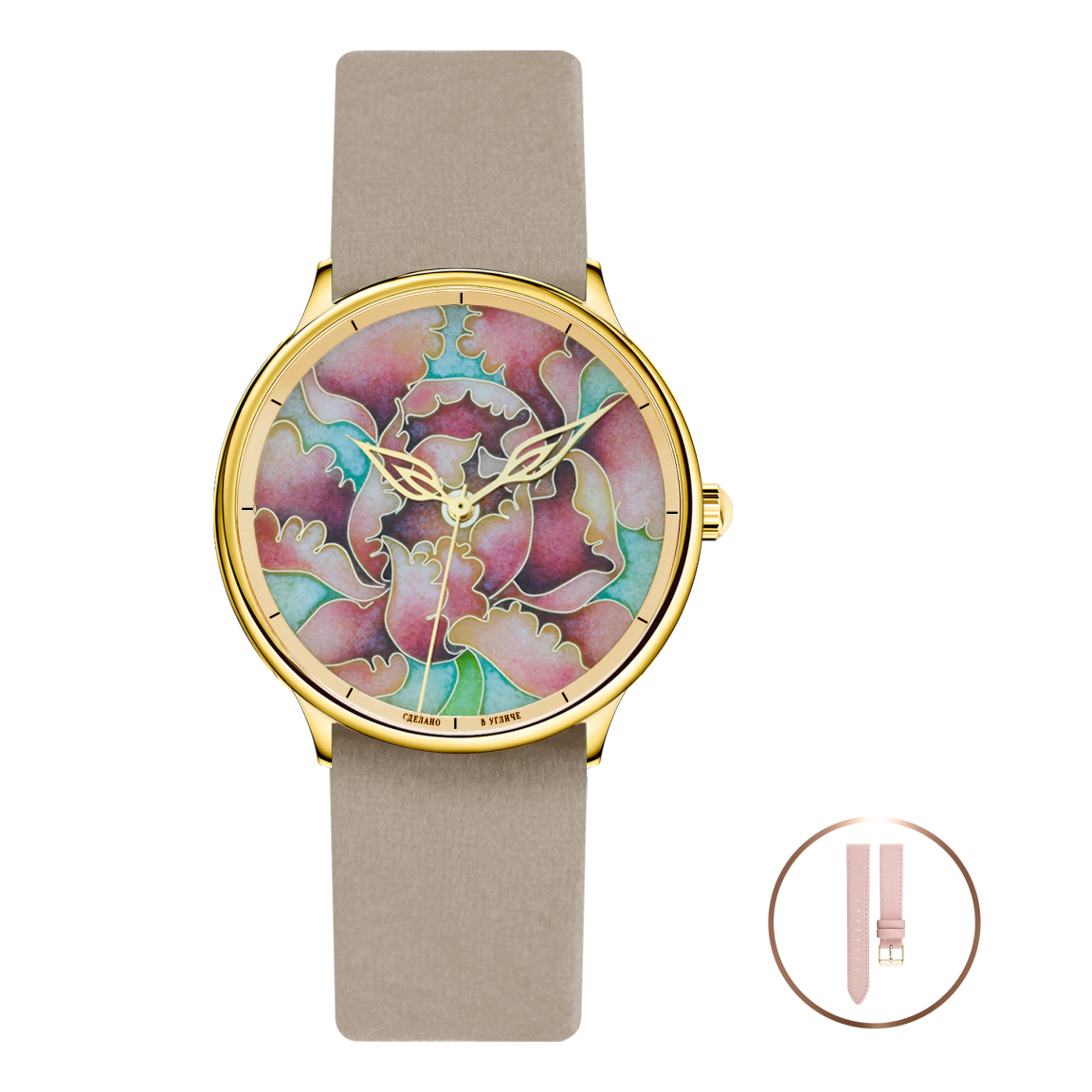 Циферблаты часов вручную изготавливаются в старинной технике горячей перегородчатой эмали, которая поражает тонкостью исполнения и завораживающими цветовыми переходами. Благодаря искусной работе мастера и магической силе огня цветной стекловидный порошок (эмаль), заполняющий тончайшие перегородки, превращается в настоящий шедевр. Технология исполнения настолько трудоёмкая, что повторить все мельчайшие элементы узора в точности невозможно, поэтому каждое изделие коллекции обладает своим собственным неординарным характером.