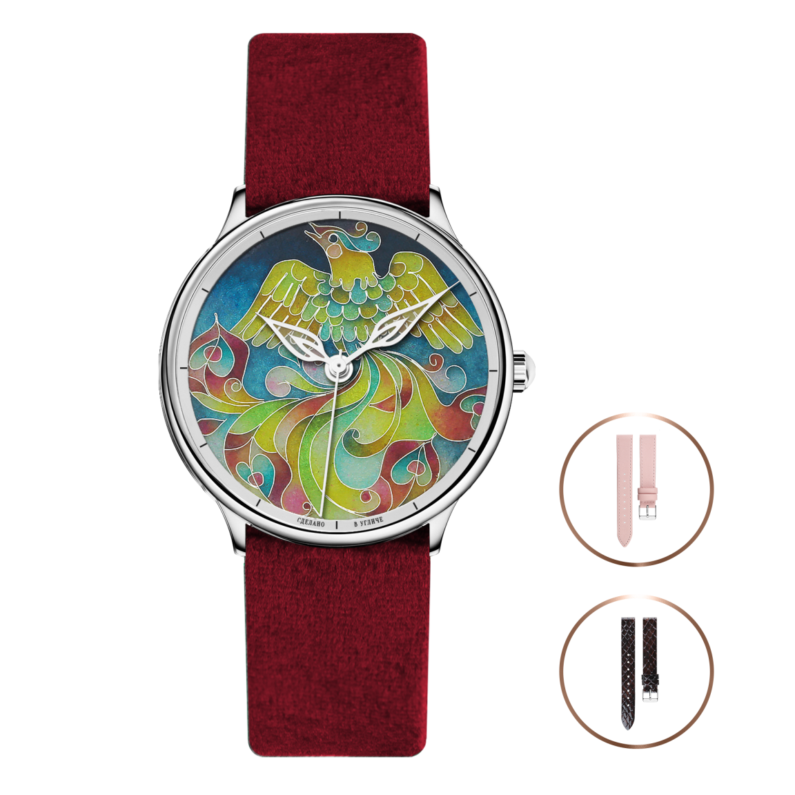 Циферблаты часов вручную изготавливаются в старинной технике горячей перегородчатой эмали, которая поражает тонкостью исполнения и завораживающими цветовыми переходами. Благодаря искусной работе мастера и магической силе огня цветной стекловидный порошок (эмаль), заполняющий тончайшие перегородки, превращается в настоящий шедевр. Технология исполнения настолько трудоёмкая, что повторить все мельчайшие элементы узора в точности невозможно, поэтому каждое изделие коллекции обладает своим собственным неординарным характером.
