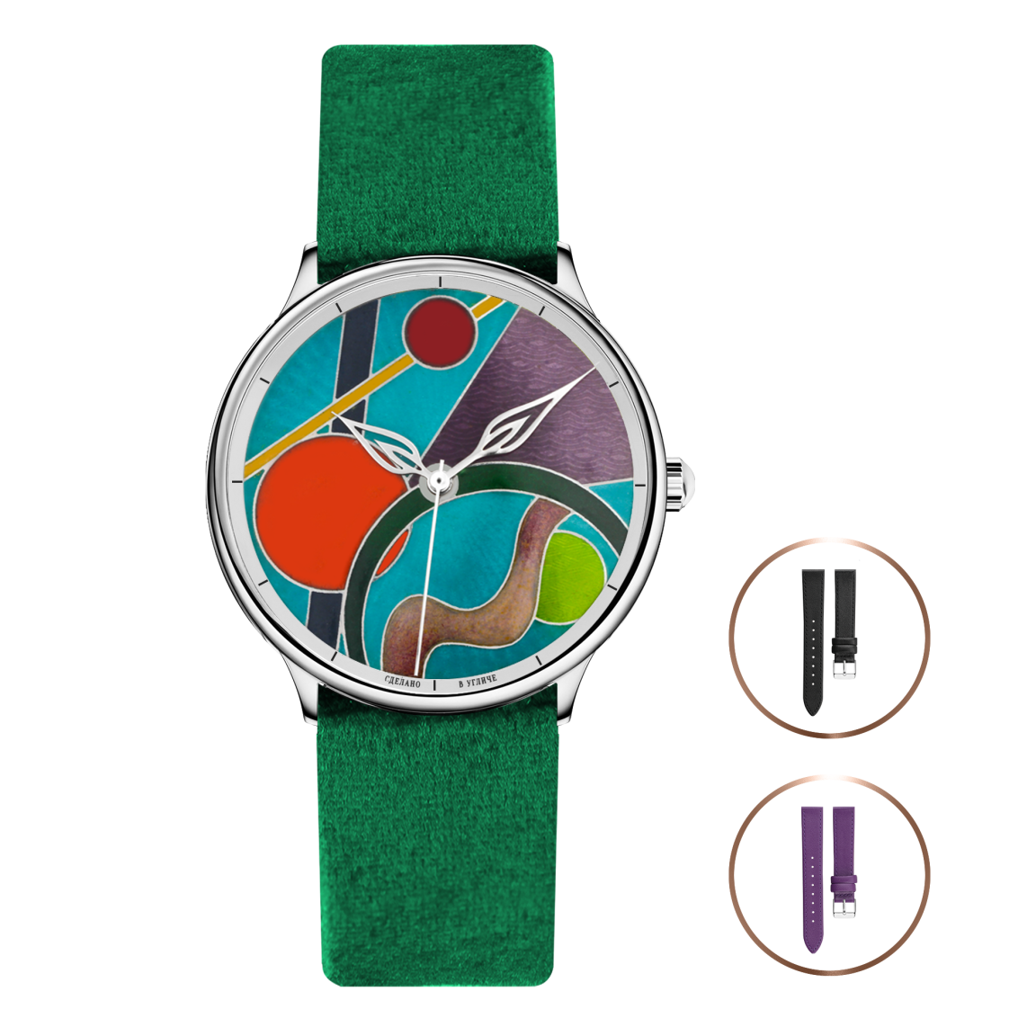 - Поскольку циферблаты изготавливаются вручную в различных техниках декоративно-прикладного искусства, возможны небольшие отличия от представленных на фото циферблатов (в деталях, оттенках цветов или линиях). Каждые часы уникальны!