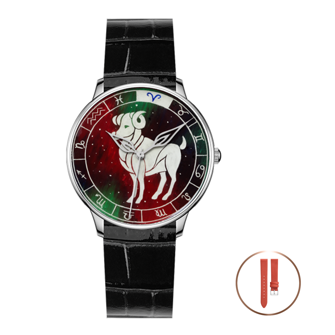 Мистический мир Зодиака в коллекции наручных часов, где каждый уникальный циферблат - миниатюрная картина, вдохновлённая символикой знаков зодиака и искусно нанесённая вручную в технике палехской лаковой миниатюры. Мы перенесли 12 созвездий знаков зодиака, которые с древности являлись инструментом для определения времени и времён года и были способом отражения космического порядка в человеческой жизни, на наши изделия - наручные часы - приборы, измеряющие неподвластное время, подчинённое законам числа 12. Пусть изображение знака зодиака станет верным талисманом на вашем запястье, сопровождающим вас каждую секунду времени.